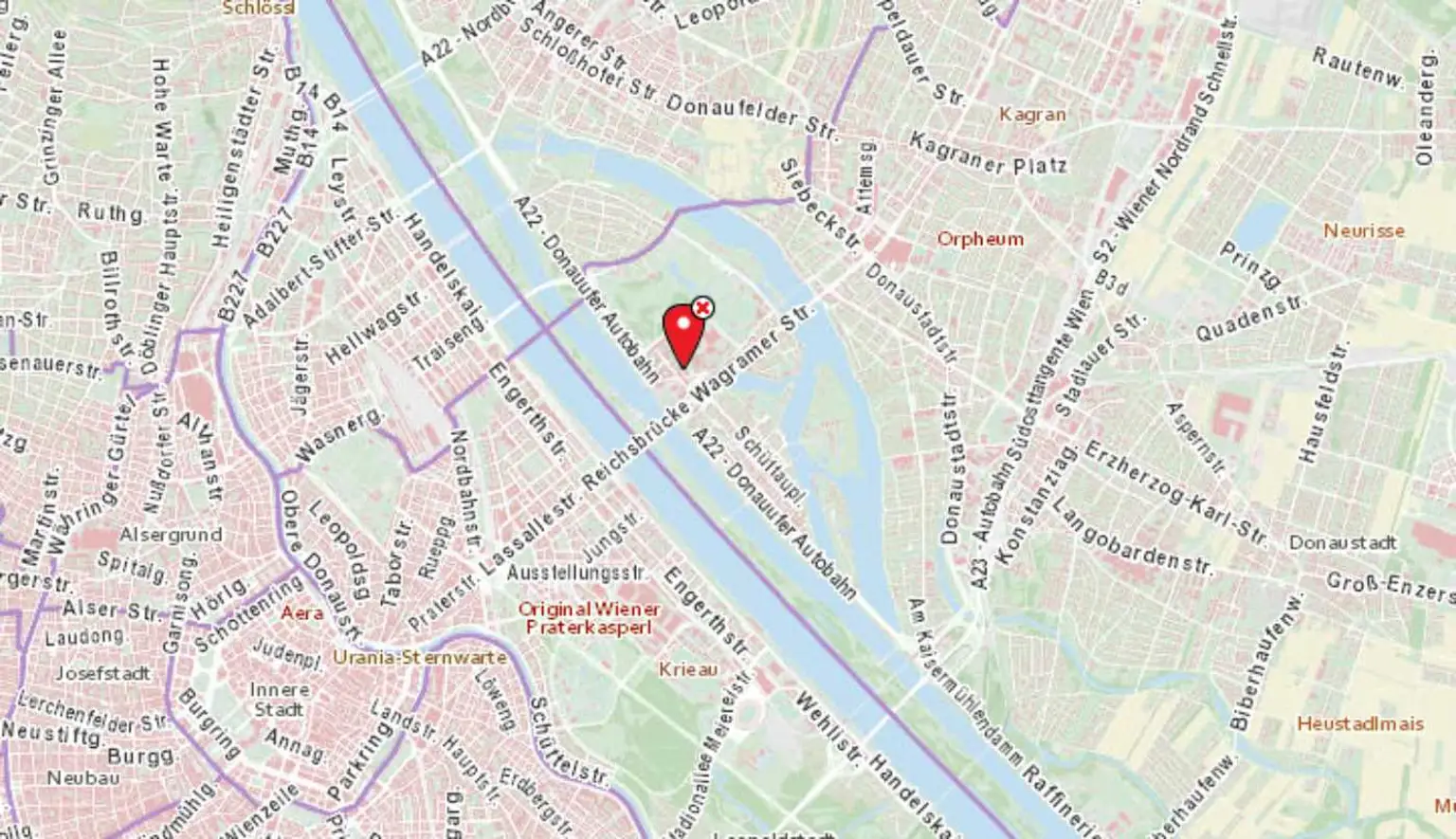 U1 Station Kaisermühlen VIC (wenige Gehminuten entfernt)