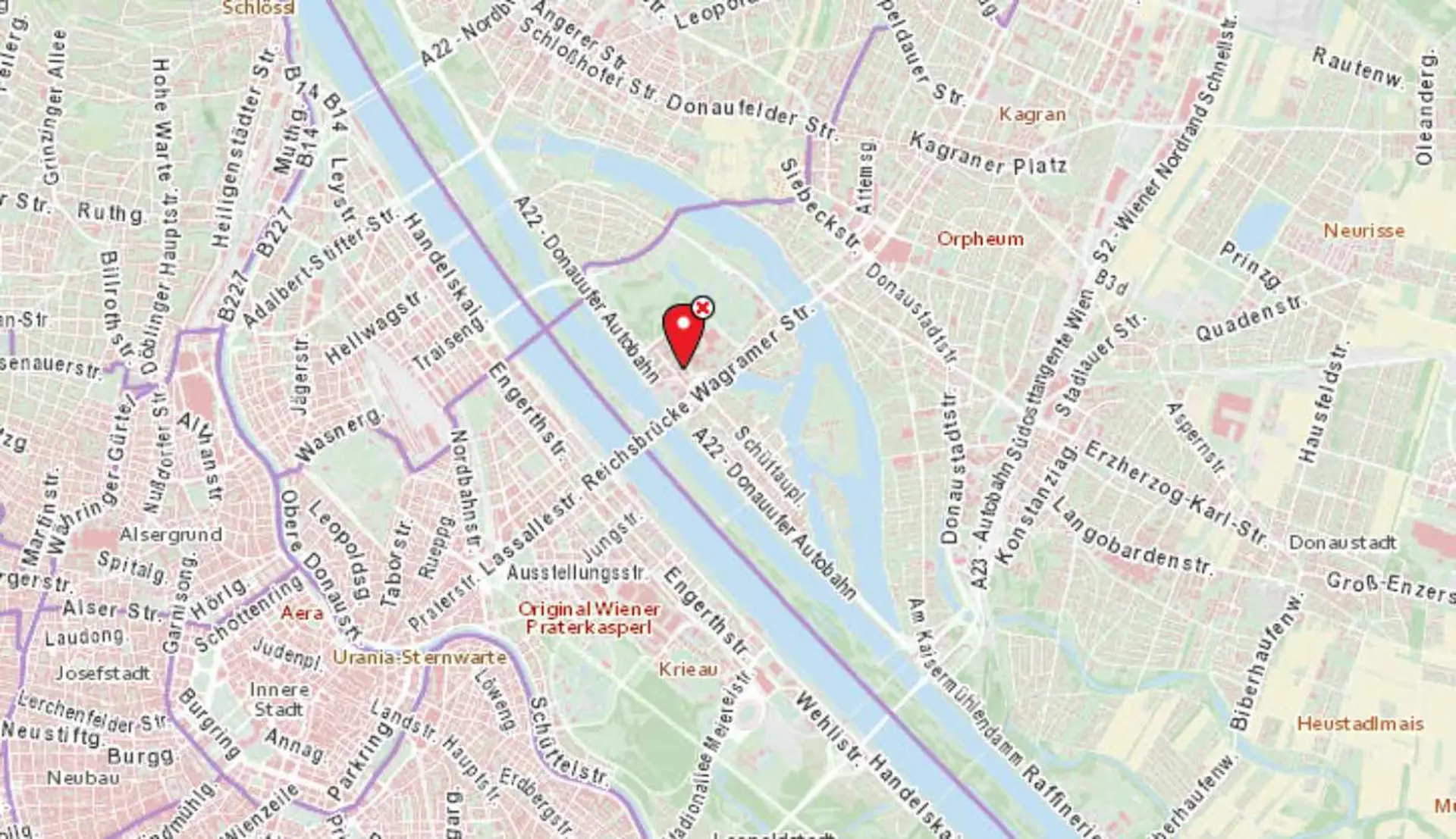 U1 Station Kaisermühlen VIC (wenige Gehminuten entfernt)