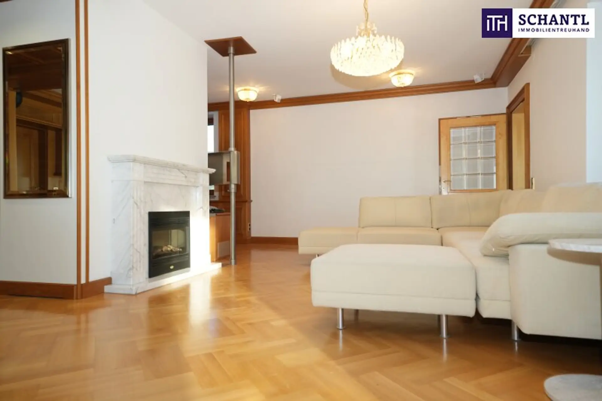 Fußbodenheizung, Kamin und Klimaanlage sorgen für Komfort, ergänzt durch eine moderne Einbauküche und stilvolle Sanitärbereiche. Praktische Extras wie drei Lagerräume im Keller, ein eigener Bunker sowie Garage und Stellplätze runden das Angebot ab.
