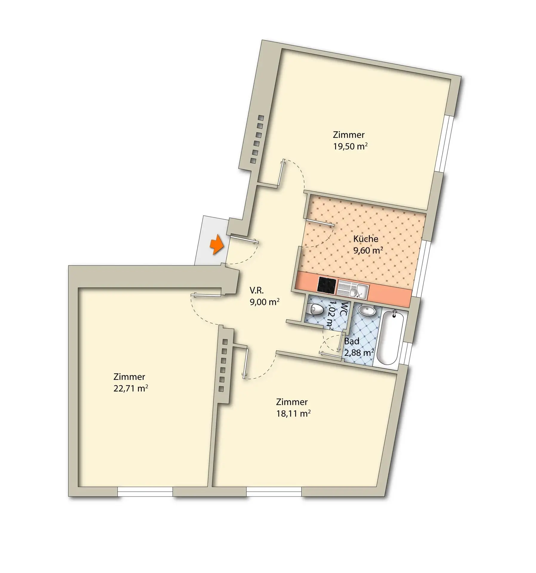 Für die Freizeit und sportliche Aktivitäten bietet sich der nahe gelegene Prater an. In 8 Minuten erreichen Sie den Erdberger Steg über den Donaukanal und sind kurz danach bei der Jesuitenwiese.