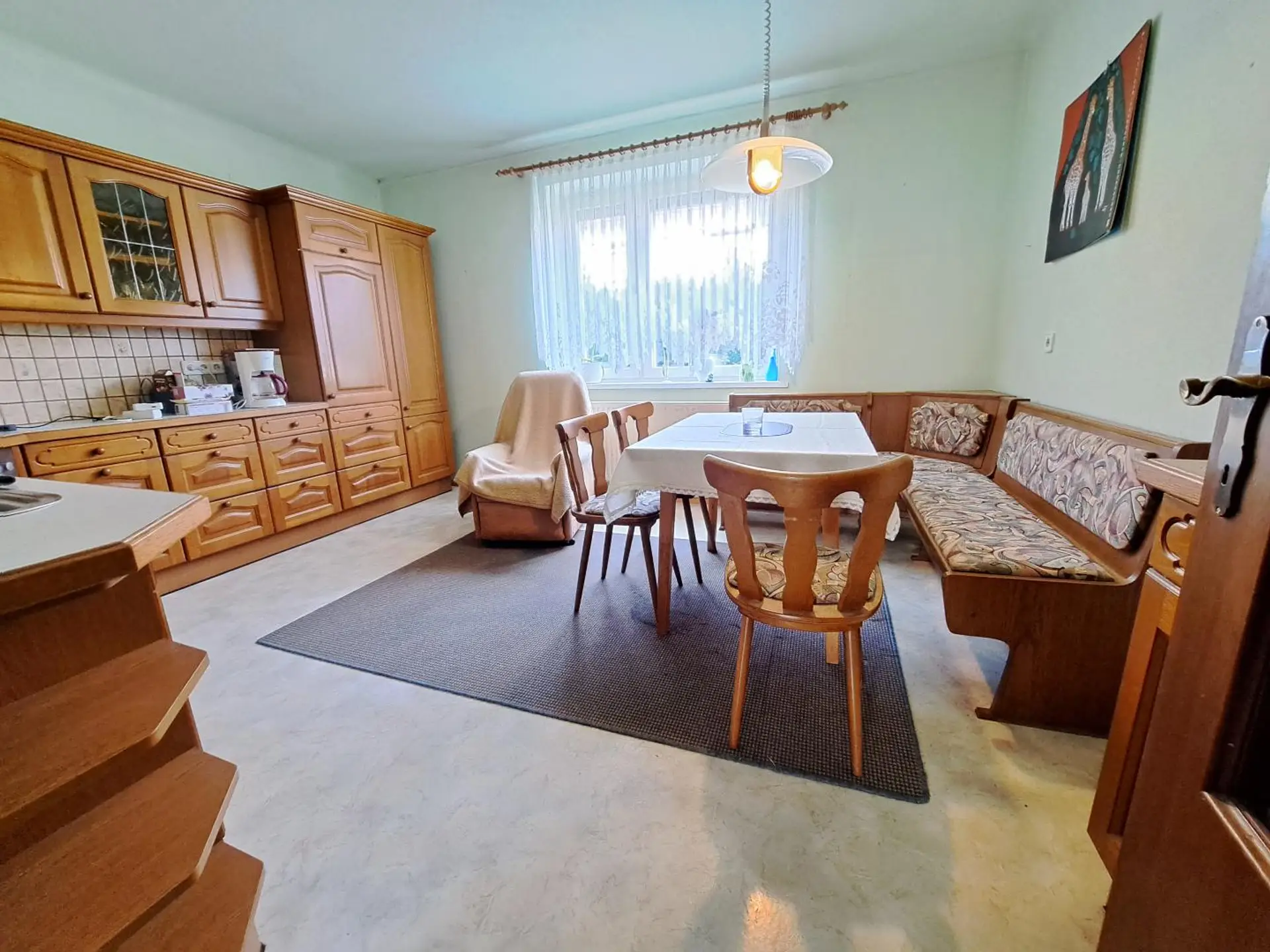 Im vorderen Bereich des Hauses befindet sich die ca. 16m² große Küche (möbl.) mit Essbereich.