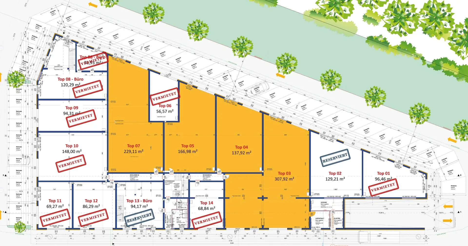 * Wir weisen daraufhin, dass auf Grund der Widmung MB an gewissen Branchen nicht vermietet werden kann. Vgl. § 21 Abs. 2a Oö. ROG 1994