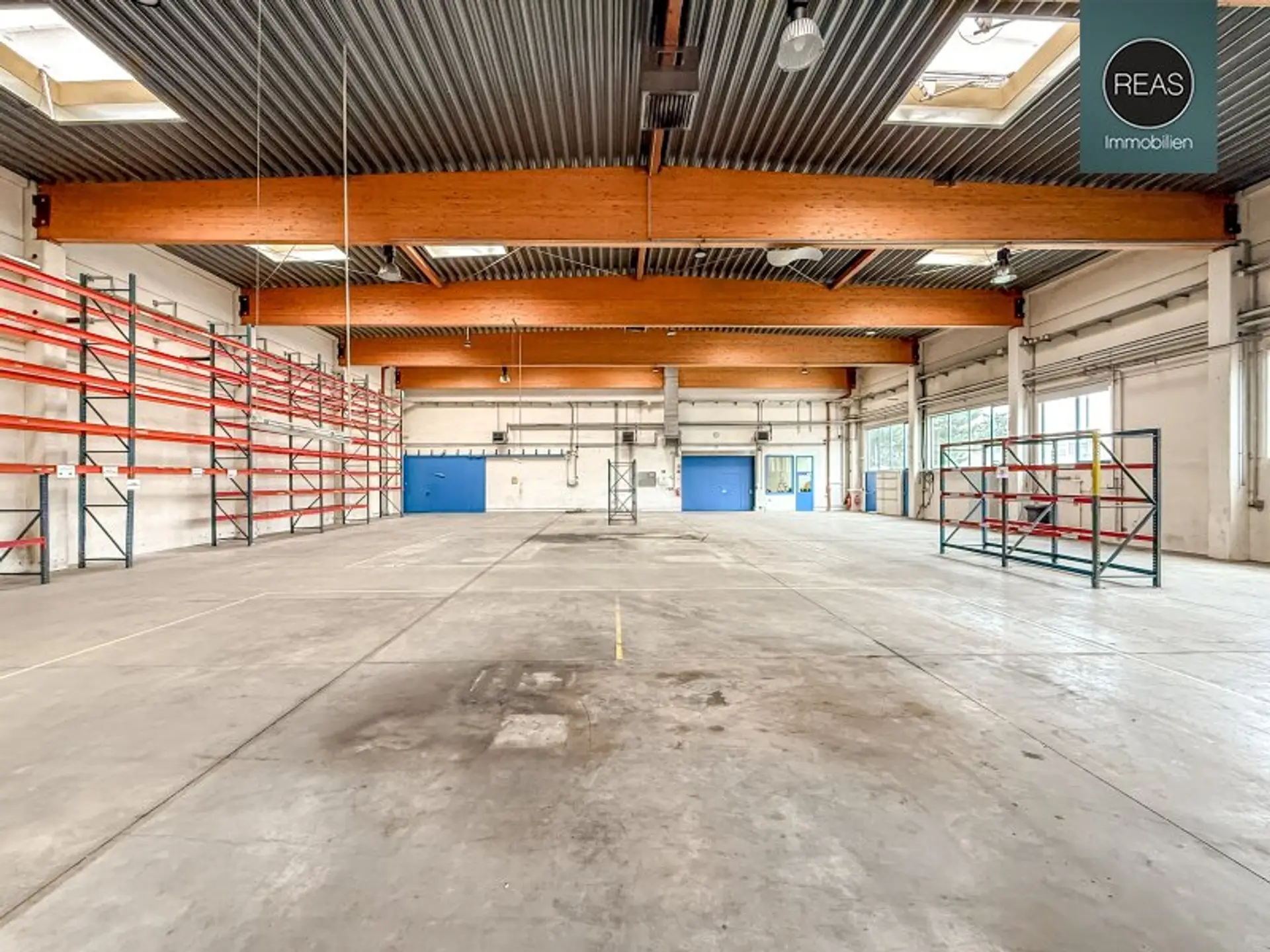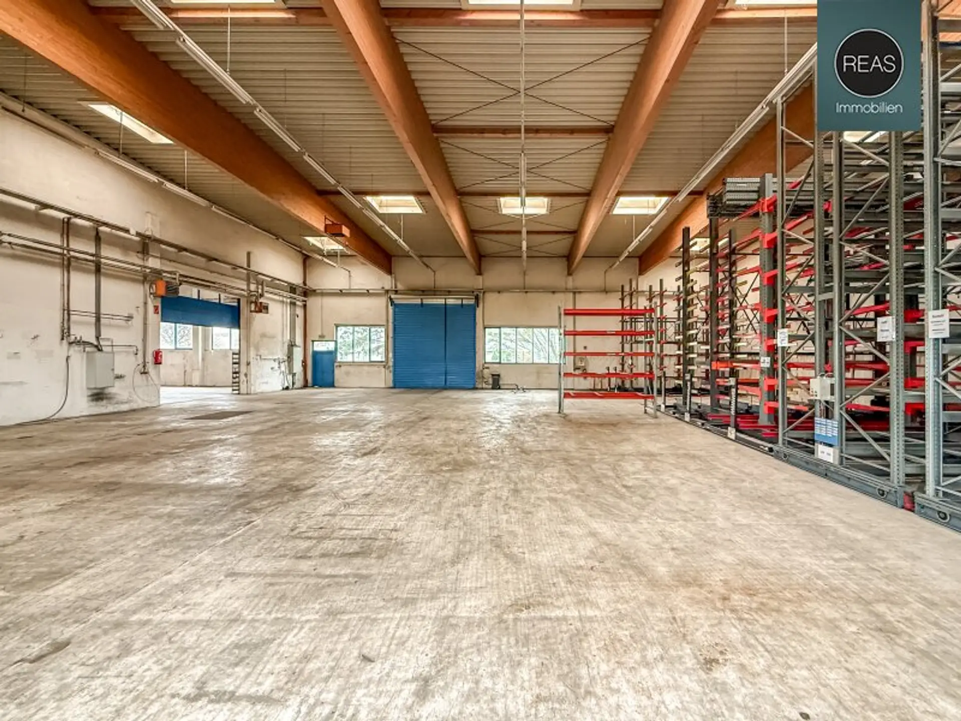 * Halle mit ca. 611m2 inklusive 2 gegenüberliegenden ebenerdigen Eingängen samt großen Einfahtstoren, Fensterflächen sowie Oberlichten für eine optimale Belichtung