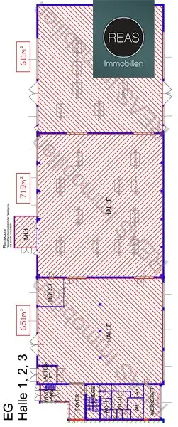 Hinweis zur Aufteilung der Flächen: Da es sich aktuell um teils zusammenhängende Hallen und Flächen handelt, erfolgt die bauliche Trennung erst nach Absprache mit dem künftigen Mieter. Der Mietzins wird entsprechend der vereinbarten Teilfläche final festgelegt und die Abrechnung erfolgt nach tatsächlichem Aufmaß der abgetrennten Teilfläche.