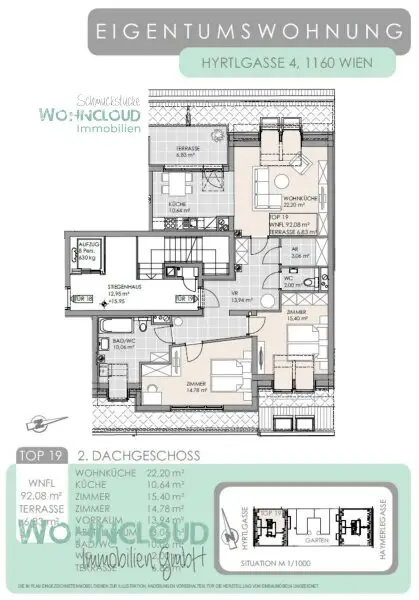 92 m² pure Großzügigkeit. Hoch oben, hell durchflutet, durchdacht aufgeteilt – und mit einer Dachterrasse, die sich wie ein Kurzurlaub anfühlt. Zwei Schlafzimmer, zwei WCs, ein Badezimmer wie aus dem Spa-Katalog, ein Wohn-Essbereich mit Luft nach oben – und mittendrin: Sie. Oder bald Sie?
