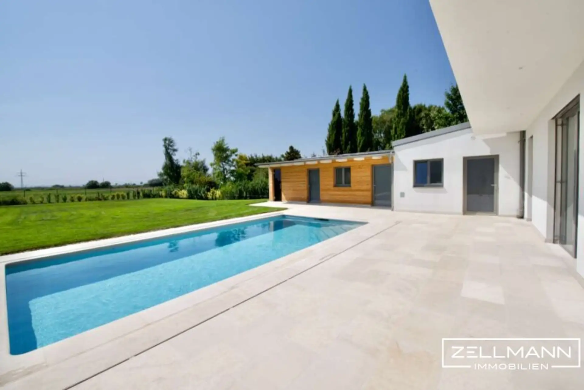 In einer der begehrtesten Lagen von Gols präsentieren sich zwei exklusive, neu errichtete Finca-Villen auf jeweils ca. 1.050 m² Grundstücksfläche. Direkt angrenzend an eine unverbaubare Wiesenlandschaft genießen Sie maximale Privatsphäre, Weitblick und mediterrane Leichtigkeit – nur wenige Minuten vom Neusiedler See entfernt. Großzügige Glasfronten verbinden den lichtdurchfluteten Wohnbereich nahtlos mit Terrasse, Pool und Garten. Hochwertige Naturmaterialien, klare Architektur und durchdachte Details schaffen ein Wohngefühl auf höchstem Niveau – ruhig, elegant und zeitlos. Sauna, Kamin und Pool unterstreichen den exklusiven Lifestyle. Gols steht für pannonische Lebensqualität: renommierte Weingüter, ausgezeichnete Gastronomie und ein mildes Klima prägen das Umfeld. Der Nationalpark Neusiedler See sowie Neusiedl am See und Parndorf sind rasch erreichbar. Wien, Flughafen und Bratislava bieten perfekte internationale Anbindung.