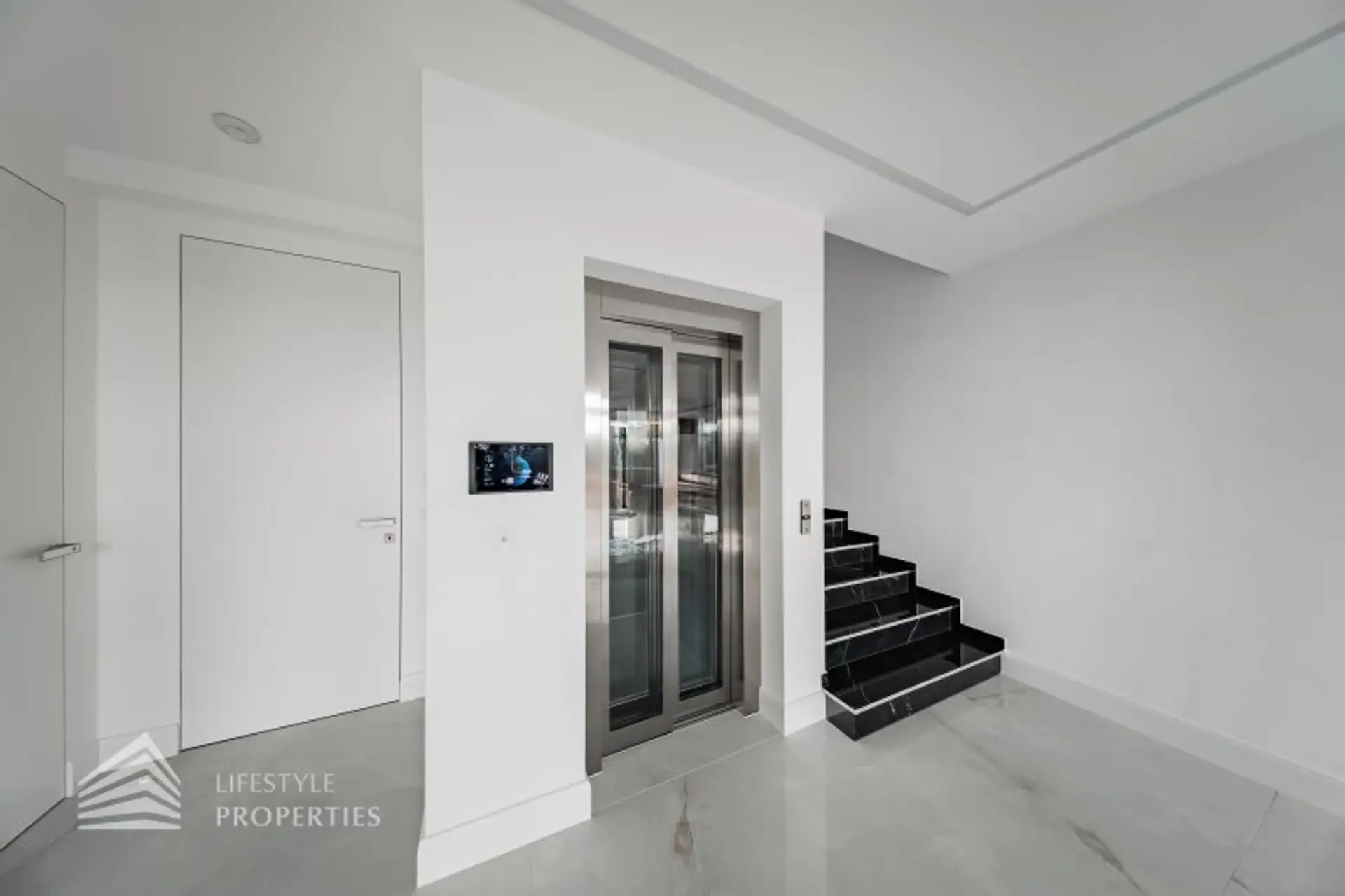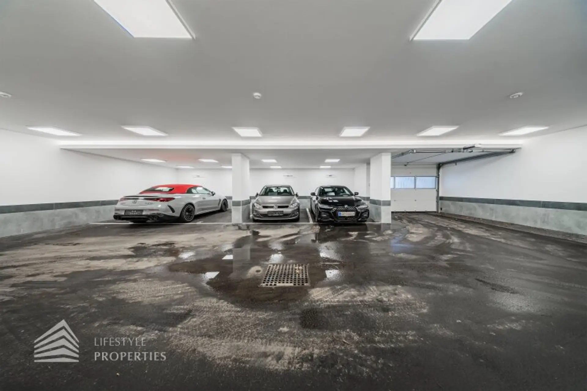 Bereits die Ankunft unterstreicht die Exklusivität dieses Anwesens: Eine außergewöhnlich großzügige Tiefgarage mit Platz für bis zu acht Fahrzeuge inklusive zweier E-Ladestationen bietet eine in Wien seltene Dimension. Der elegante Lift mit transparenter Glastüre von KONE verbindet sämtliche Ebenen komfortabel und stilvoll.