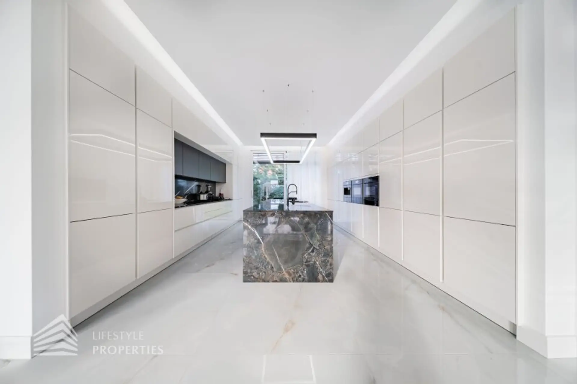 Der private Wellnessbereich bietet eine Sauna, einen Indoor-Jacuzzi für zwei Personen sowie einen großzügigen Outdoor-Jacuzzi für bis zu neun Personen. Der 8 x 5 Meter große Außenpool inklusive Reinigungsroboter, zwei bioklimatische Pergolen, eine voll ausgestattete Outdoor-Küche sowie eine repräsentative Gartensitzgruppe schaffen ein exklusives Ambiente für stilvolle Empfänge oder entspannte Stunden im privaten Refugium.