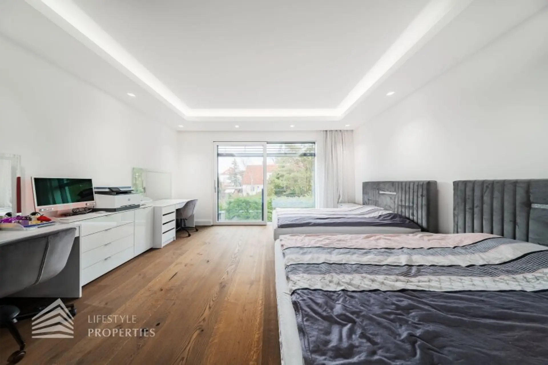 Mit insgesamt acht großzügig dimensionierten Zimmern eröffnet die Villa vielfältige Nutzungsmöglichkeiten – von repräsentativen Wohnsalons über exklusive Master-Suiten bis hin zu stilvollen Office- oder Gästebereichen. Die Architektur folgt einer klaren, zeitlosen Formensprache und setzt auf Licht, Raumwirkung und hochwertige Materialien in internationaler Qualität.