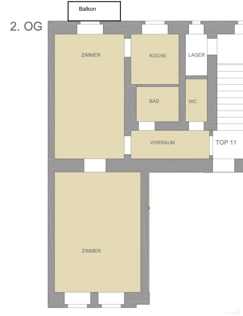 Im 2 OG ohne Lift befindet sich diese sanierte Einheit mit 2 Räumen. Vorraum, Wohn-Esszimmer mit angrenzender extra Küche (möbliert) sowie Zugang zum Balkon, 1 Schlafzimmer, Bad mit Dusche & WM Anschuss , extra WC.