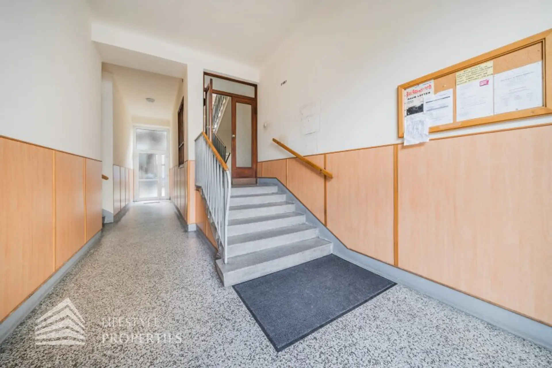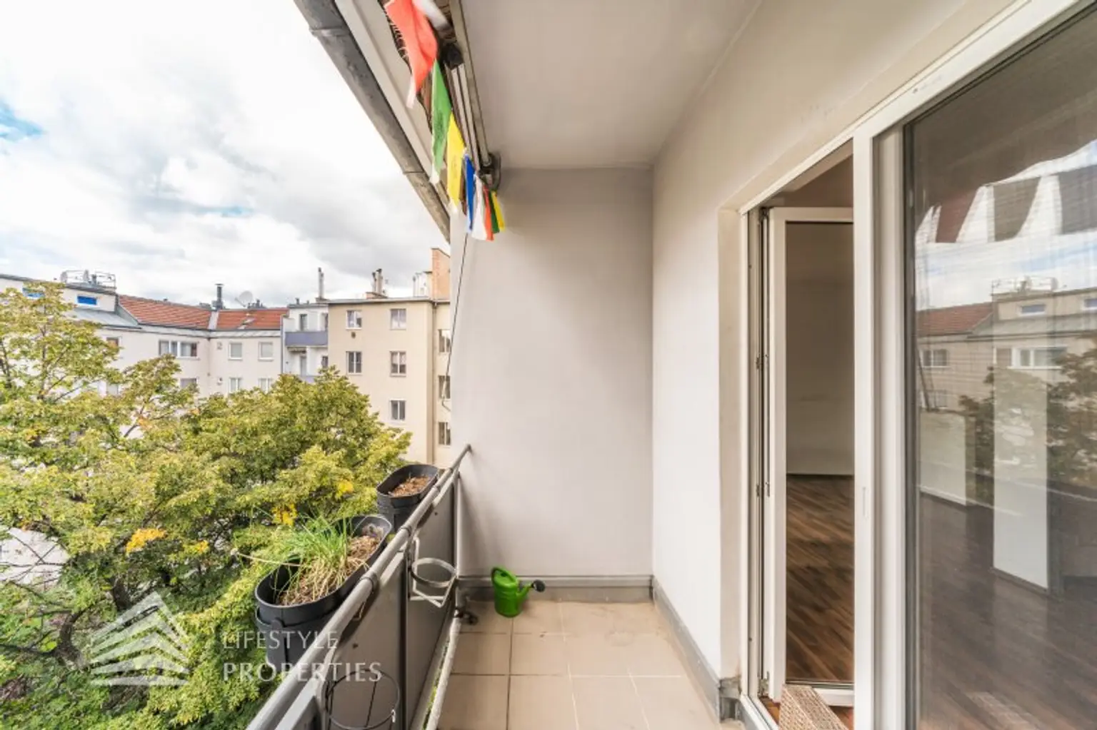 Die Räumlichkeiten der ca. 56 m² großen, charmanten Wohnung, welche sich im fünften Stock ohne Aufzug befindet, sind mit ansprechenden Laminat verlegt und Vorzimmer, Badezimmer und Küche geschmackvoll verfliest. Alle Wände wurden in neutralem weiß gestrichen. Vom Vorzimmer, welches mit einem Schuhschrank und einem großen, deckenhohen Regal ausgestattet ist, gelangen Sie rechter Hand ins Badezimmer. Darin befindet sich eine Dusche, das Waschbecken mit Spiegel und Unterschrank, die Toilette, ein Waschmaschinenanschluss sowie ein Hängeschrank, farblich harmonisch miteinander abgestimmt. Am Ende des Ganges kommen Sie ins Schlafzimmer, welches einen offenen Kleiderschrank über die gesamte Rückwand aufweist. Die offen gestaltete Wohn-Küche ist ein absolutes Highlight dieser Wohnung. Durch zwei Fenster und die Glastür, welche zum Balkon führt, wirkt der Raum hell und behaglich. Hier herrscht genügend Platz um zu kochen, zu essen und sich zu erholen, ohne den Raum oder die Gesellschaft verlassen zu müssen. Auch bei der Küche wurde viel Wert auf abgestimmte Farben gelegt, ausgestattet mit einen Herd, einen Geschirrspüler, einen Kühlschrank sowie eine Spüle mit Ober- und Unterschränken. Der Balkon blickt in den ruhigen Innenhof und bietet genügend Platz im Freien um verweilen zu können.
