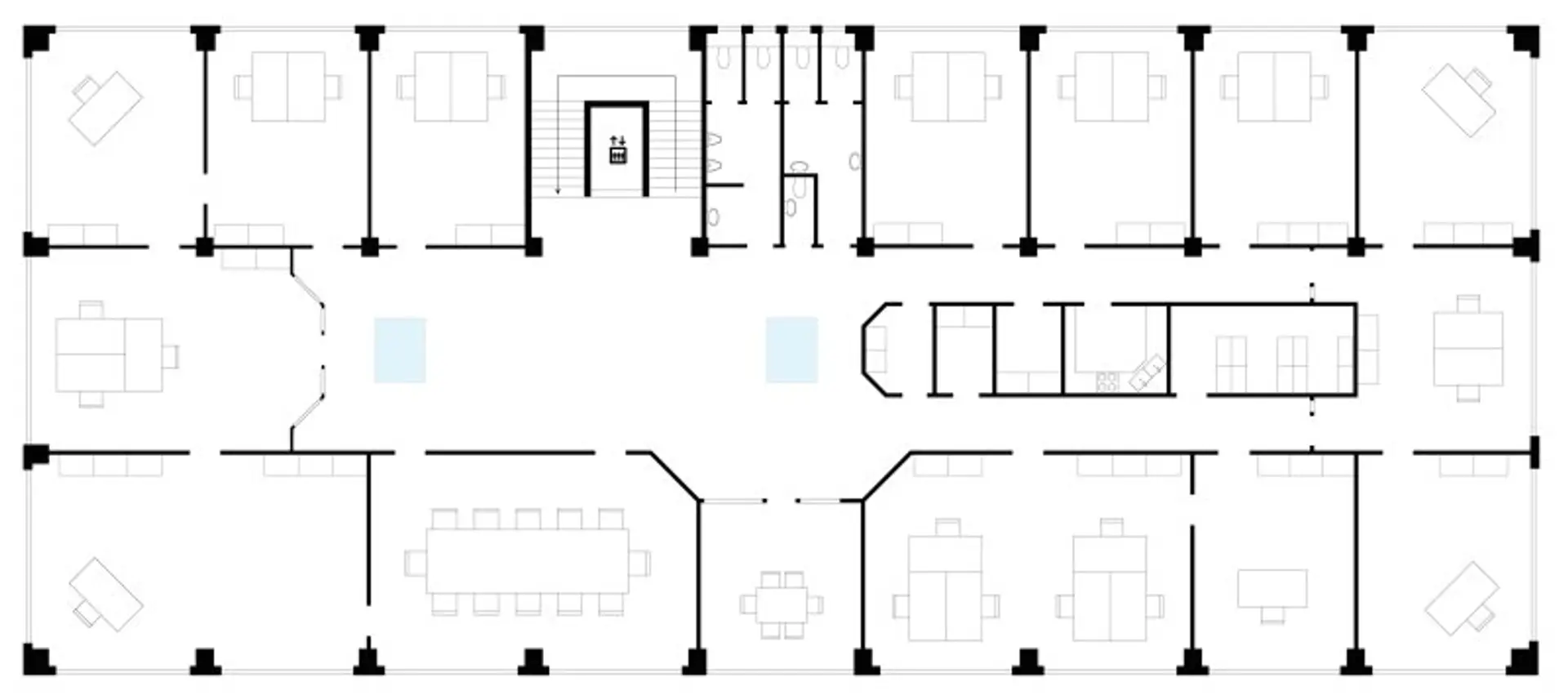Zur Vermietung stehen die beiden oberen Etagen (2. und 3. OG) mit einer Gesamtfläche von 1.230 m² zur Verfügung.