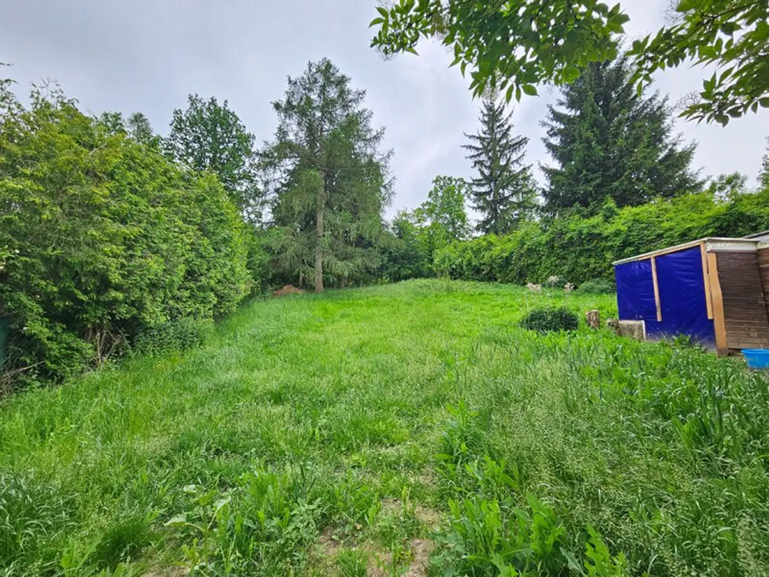 Es misst 1030m² Grundfläche, 50m² Wohnfläche und ist teil unterkellert.