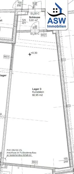 88,56 m² großes Lager inkl. Schleuse und Rampe für Anlieferung.