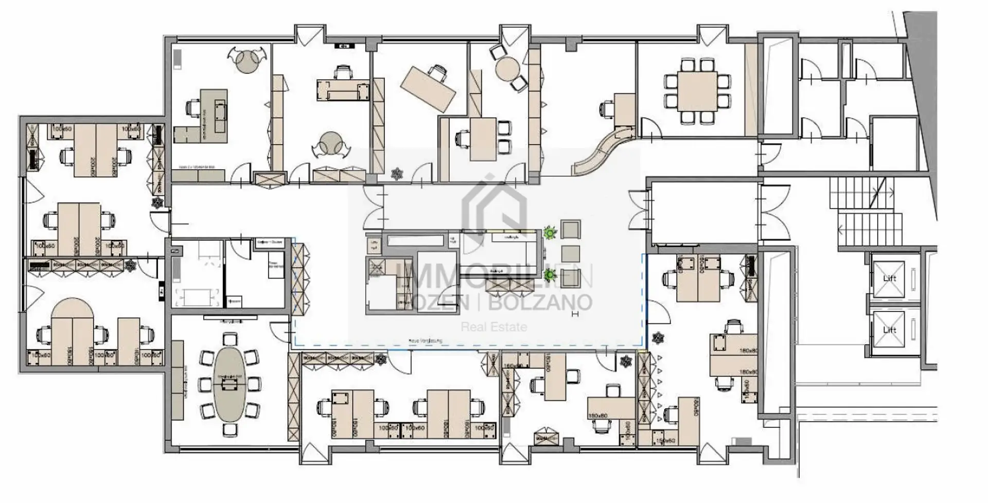 Das zu vermietende Büro befindet sich direkt in der Altstadt von Bozen, in einem Gebäude im 1. Stock. Es hat eine Gesamtfläche von ca. 472,75 m² und besteht aus: Flur mit großen Empfangsbereich, mehreren Büroräumen, Küche, Archiv, Badezimmer und einer großen Terrasse. 2 Autostellplätze sind in der Garage extra verfügbar.