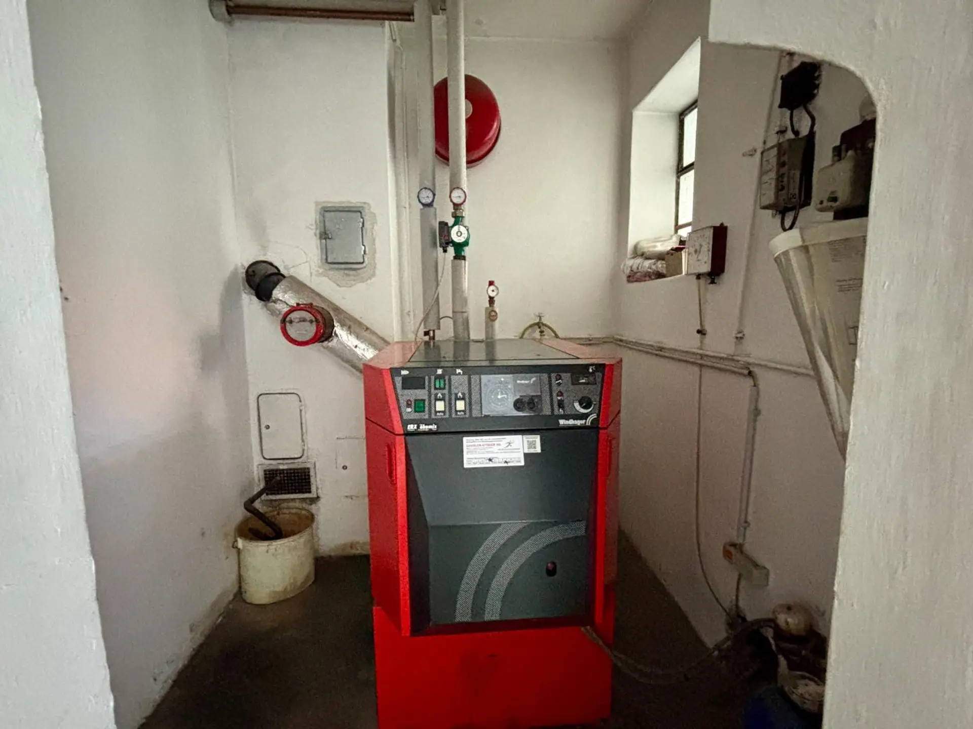 Beheizt wird es mittels Ölzentralheizung, das Wasser wird mittels WW - Speicher über Strom aufbereitet.