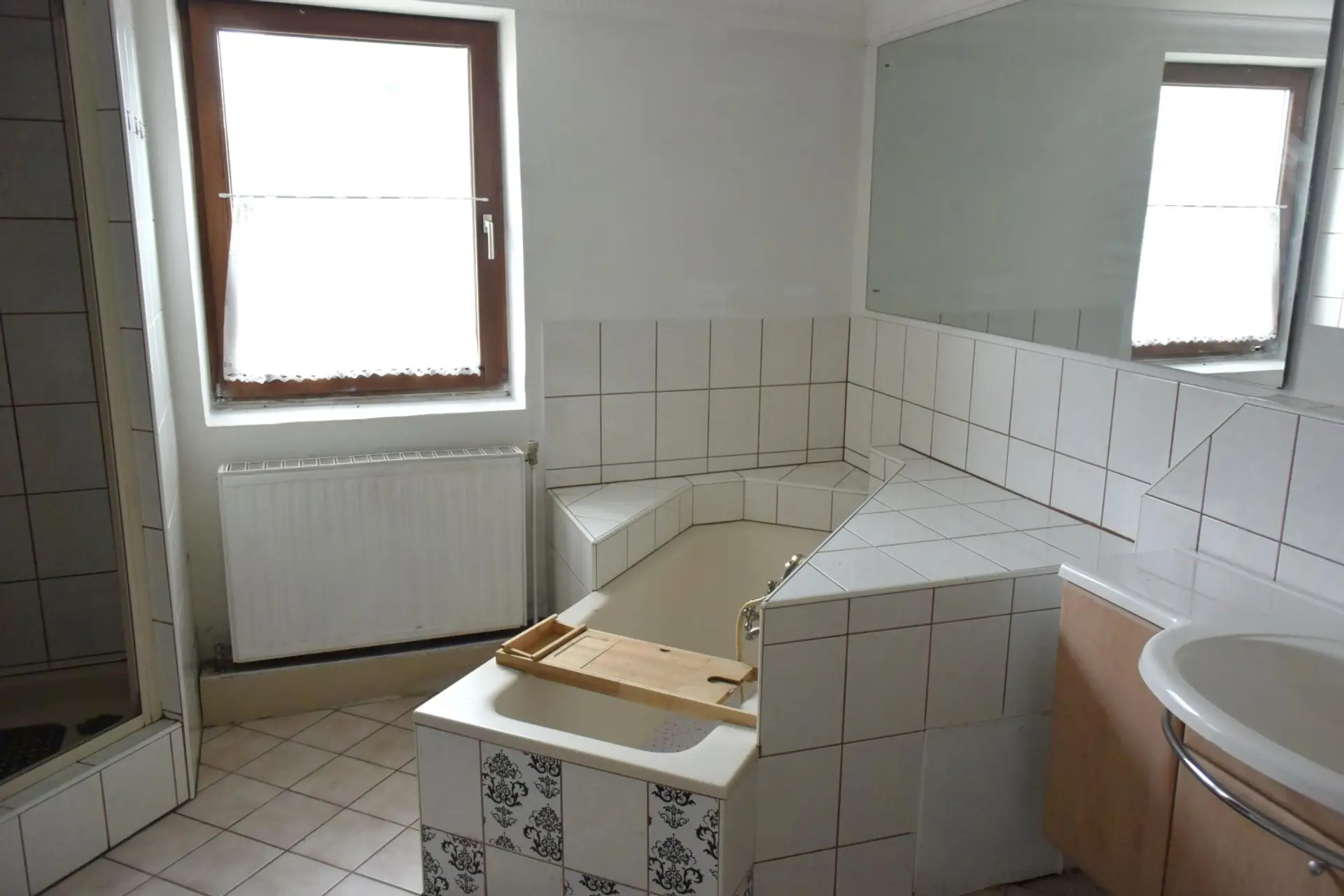 Im Vorhaus und in den Sanitärbereichen befinden sich Fliesen
