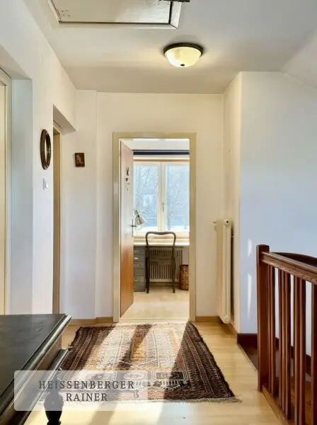 Das Haus ist ideal ost-westlich ausgerichtet. Der Wohnbereich öffnet sich mit großen Fensterflächen und schönem Grünblick nach Westen zur Abendsonne, die Hauptschlafzimmer mit Balkon nach Osten zur Morgensonne. Das Haus wurde in den 60er Jahren errichtet, stets gepflegt und ca. 2005 mit sehr schönen, neuen Lärchenholzfenstern ausgestattet.
