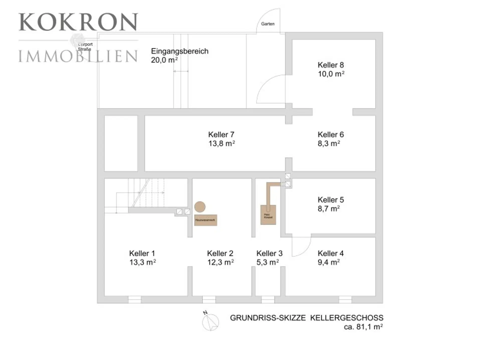 Ein ca. 80 m² großer Keller bietet mit einzelnen Räumlichkeiten viel Stauraum für Ihr Hab und Gut.