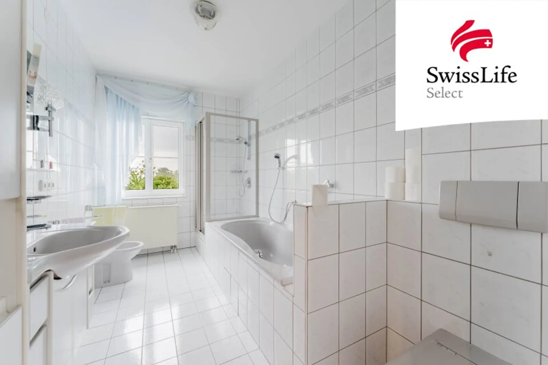 * helles Badezimmer mit Badewanne, Dusche, Bidet und Toilette