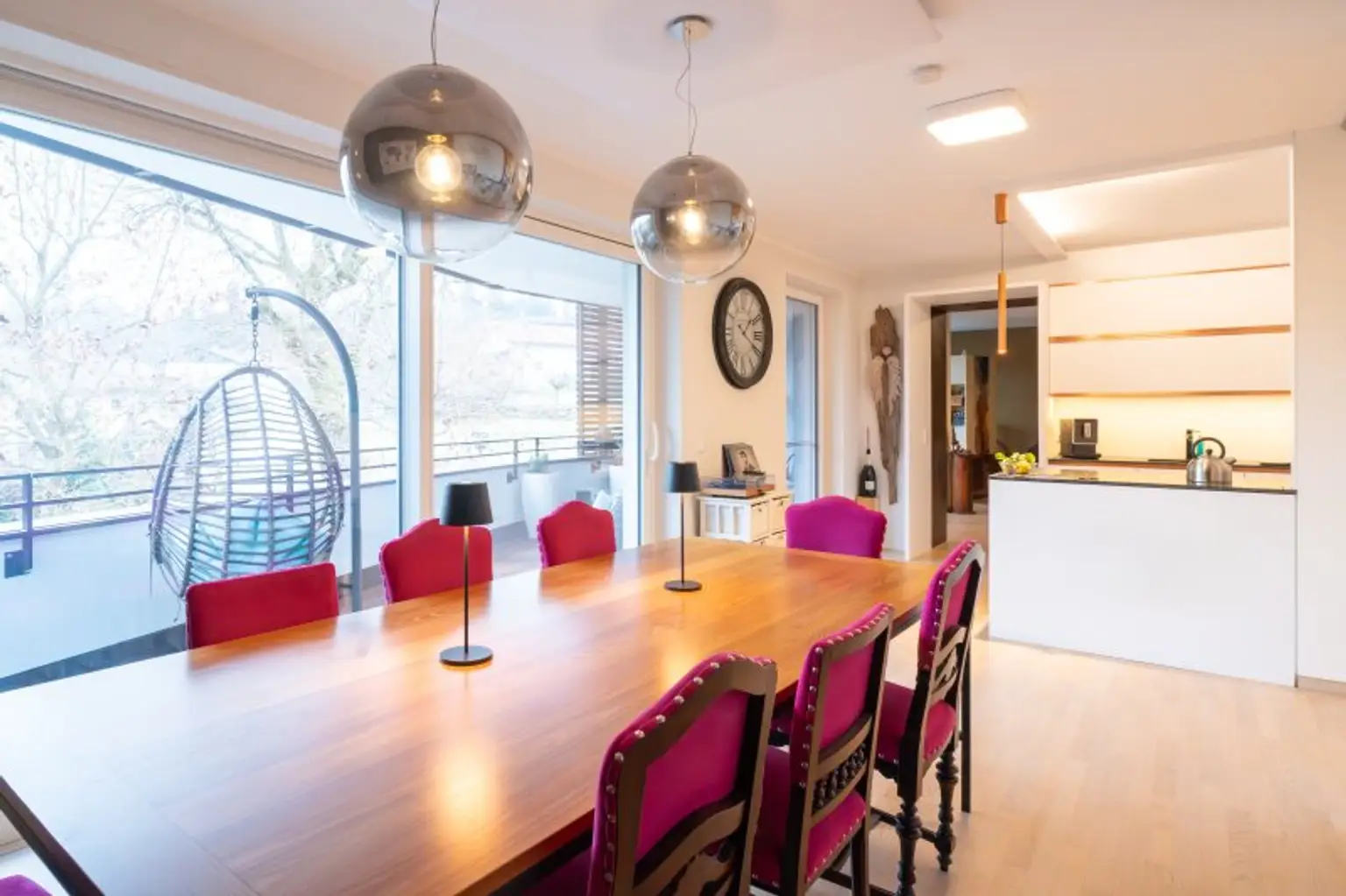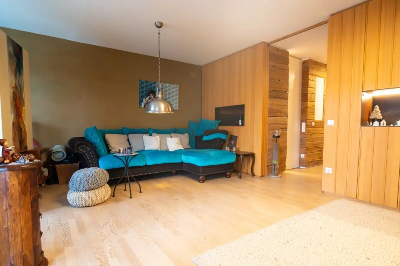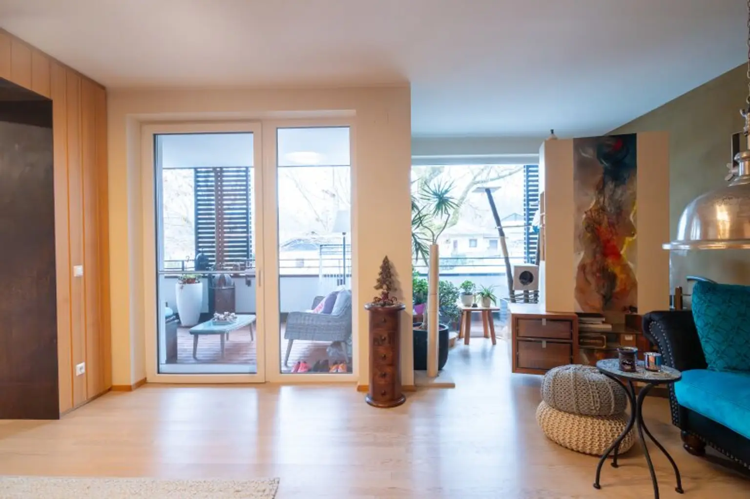 Ein zentrales Highlight ist der große, überdachte Balkon mit Süd-Ausrichtung. Hier genießen Sie Sonne bis in die Abendstunden, geschützt und mit einem angenehmen Blick ins Umfeld – ein Ort, der den Wohnraum spürbar erweitert. Die Ausstattung unterstreicht den hochwertigen Anspruch der Immobilie: maßgefertigte Tischlermöbel fügen sich harmonisch in das Gesamtbild ein und schaffen klare Linien, Stauraum und Wertigkeit, ohne aufdringlich zu wirken.