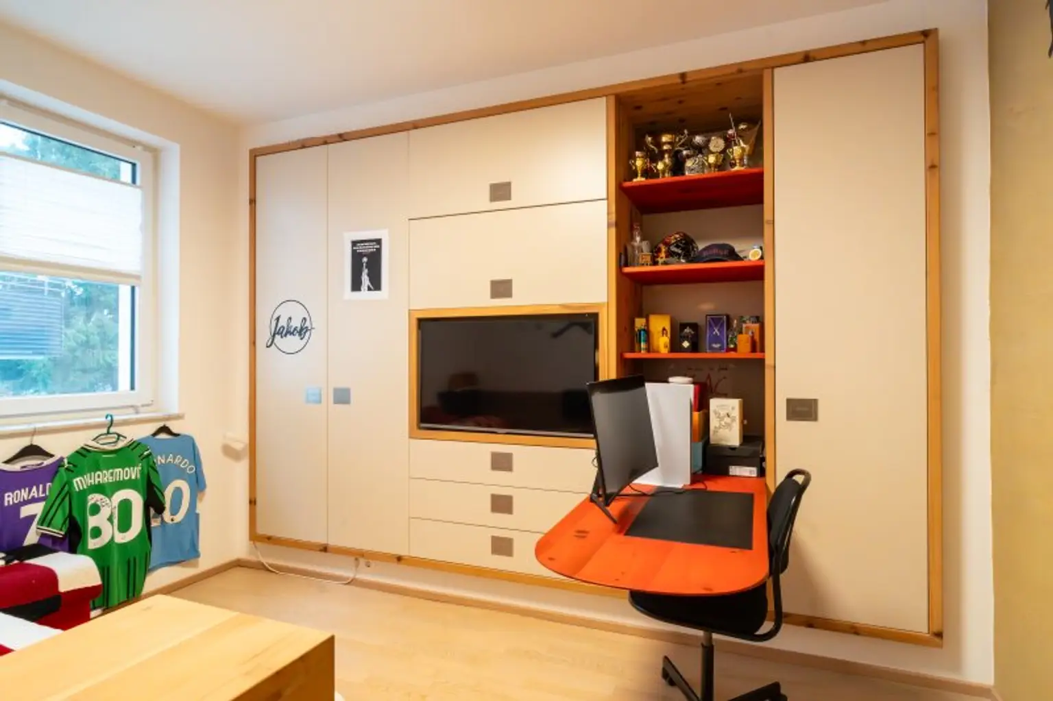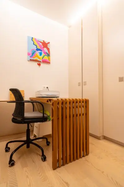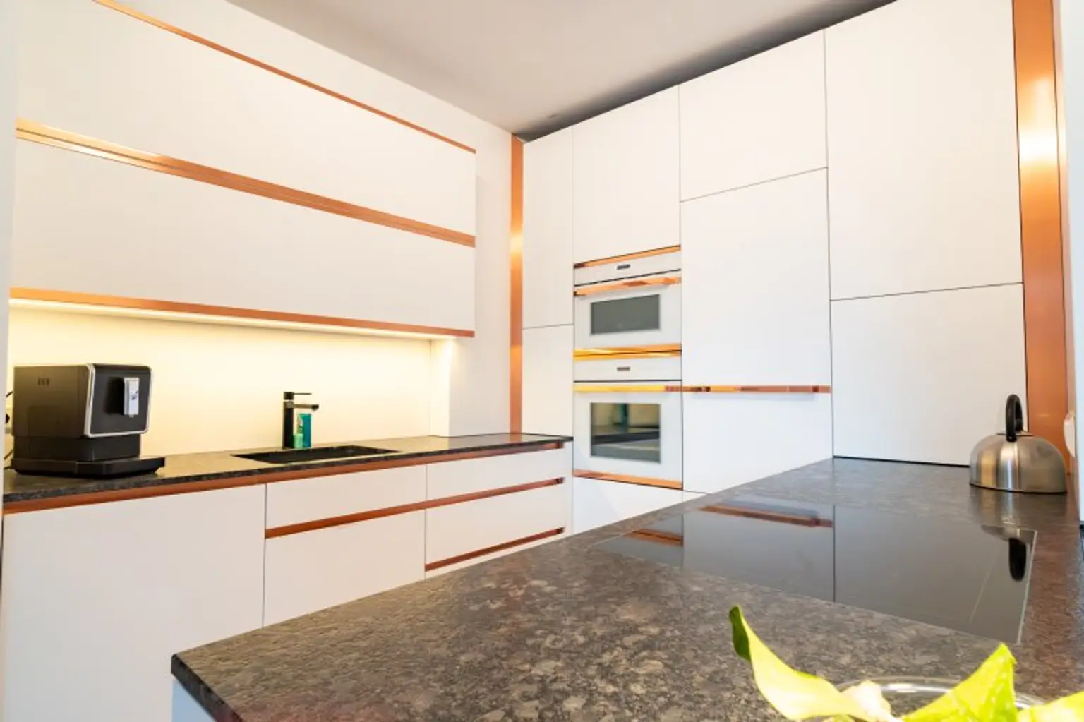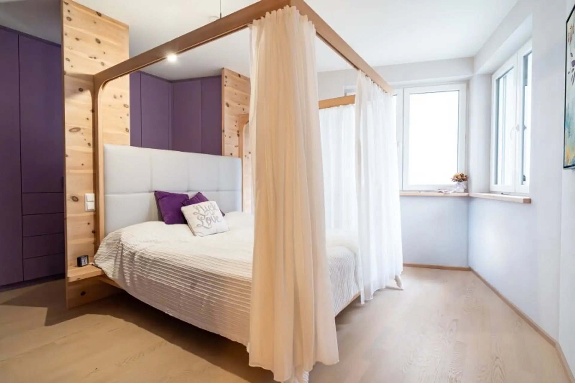 Ein zentrales Highlight ist der große, überdachte Balkon mit Süd-Ausrichtung. Hier genießen Sie Sonne bis in die Abendstunden, geschützt und mit einem angenehmen Blick ins Umfeld – ein Ort, der den Wohnraum spürbar erweitert. Die Ausstattung unterstreicht den hochwertigen Anspruch der Immobilie: maßgefertigte Tischlermöbel fügen sich harmonisch in das Gesamtbild ein und schaffen klare Linien, Stauraum und Wertigkeit, ohne aufdringlich zu wirken.