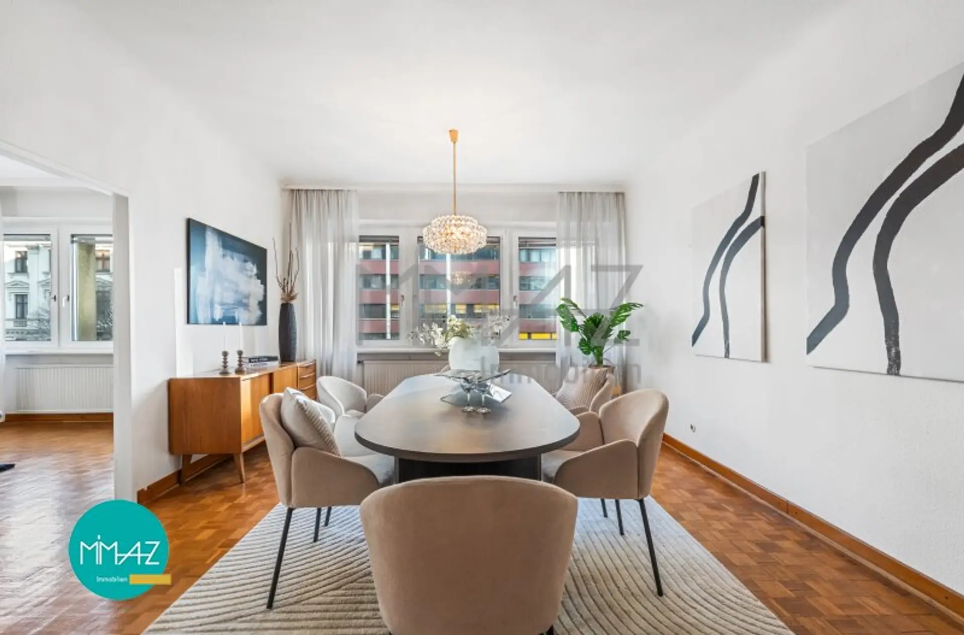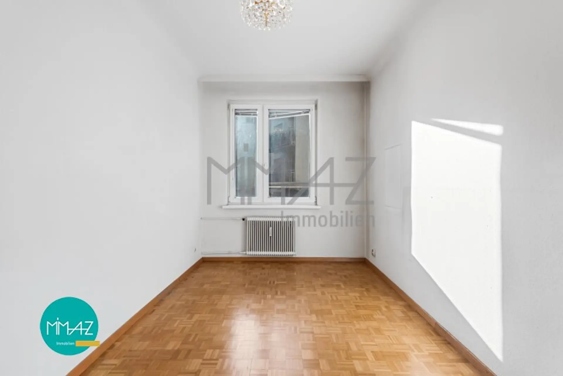 Die Wohnung wird unmöbliert verkauft und wurde für die Vermarktung sowie für ein besseres Raumgefühl gestaged.