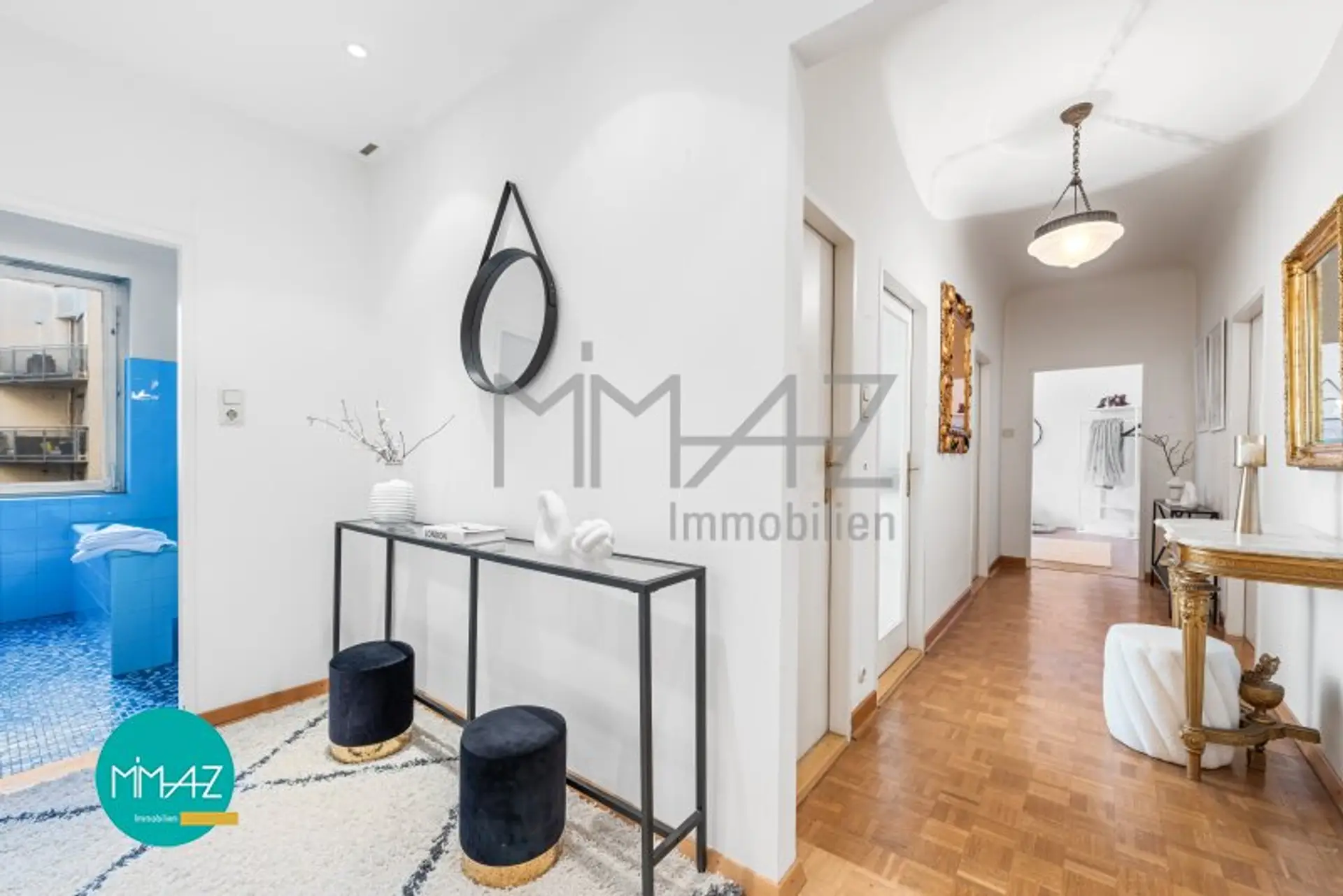 Bereits beim Betreten der Wohnung zeigt sich die durchdachte Struktur und das einladende Flair dieser charmanten Stadtresidenz: