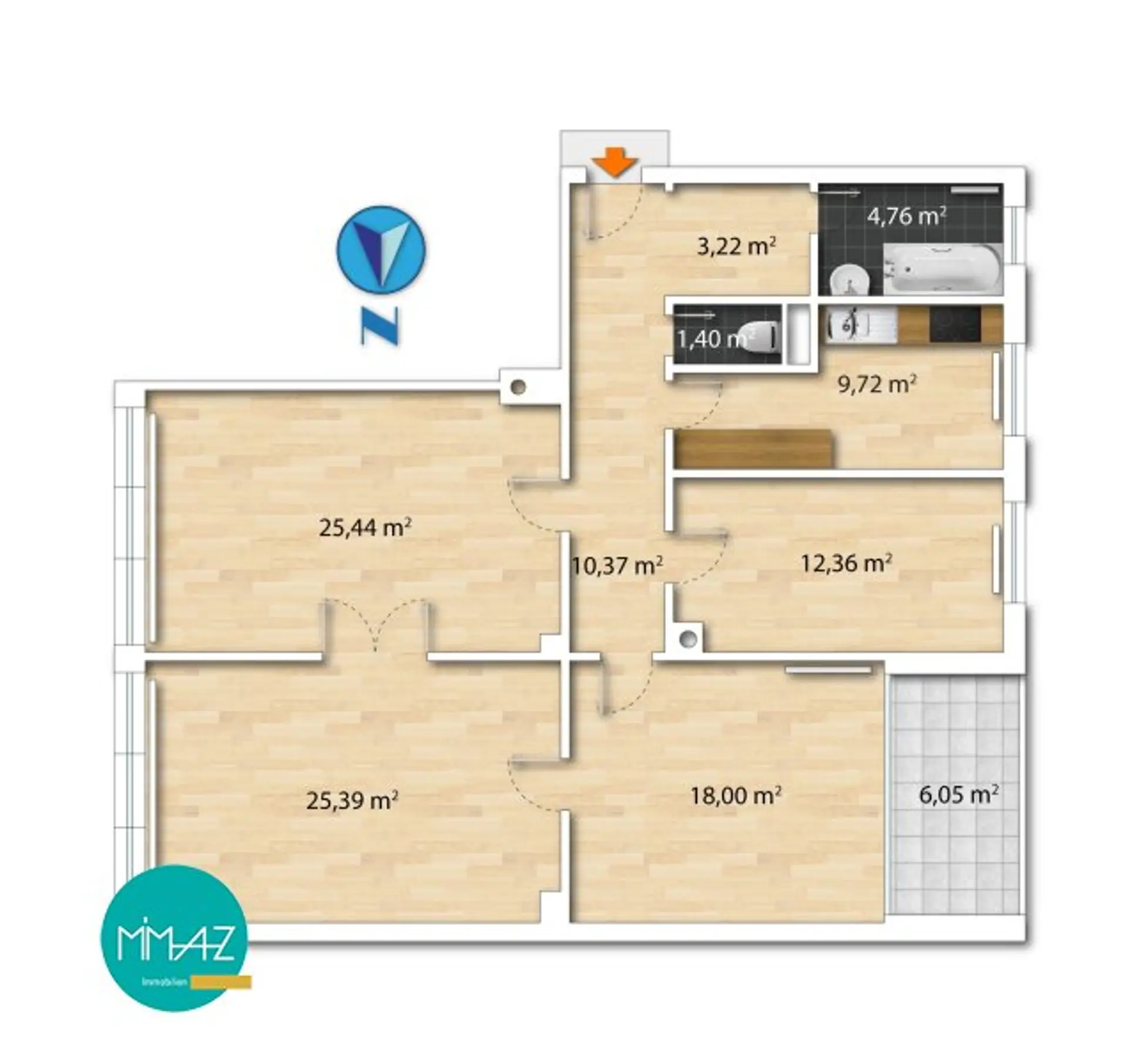 Die rund 116 m² Wohnnutzfläche (inklusive Loggia) überzeugen durch eine klaren Grundriss, großzügige Dimensionen und ein angenehmes Raumgefühl, das sowohl Familien als auch Menschen mit Platzbedarf für Homeoffice oder repräsentatives Wohnen anspricht.