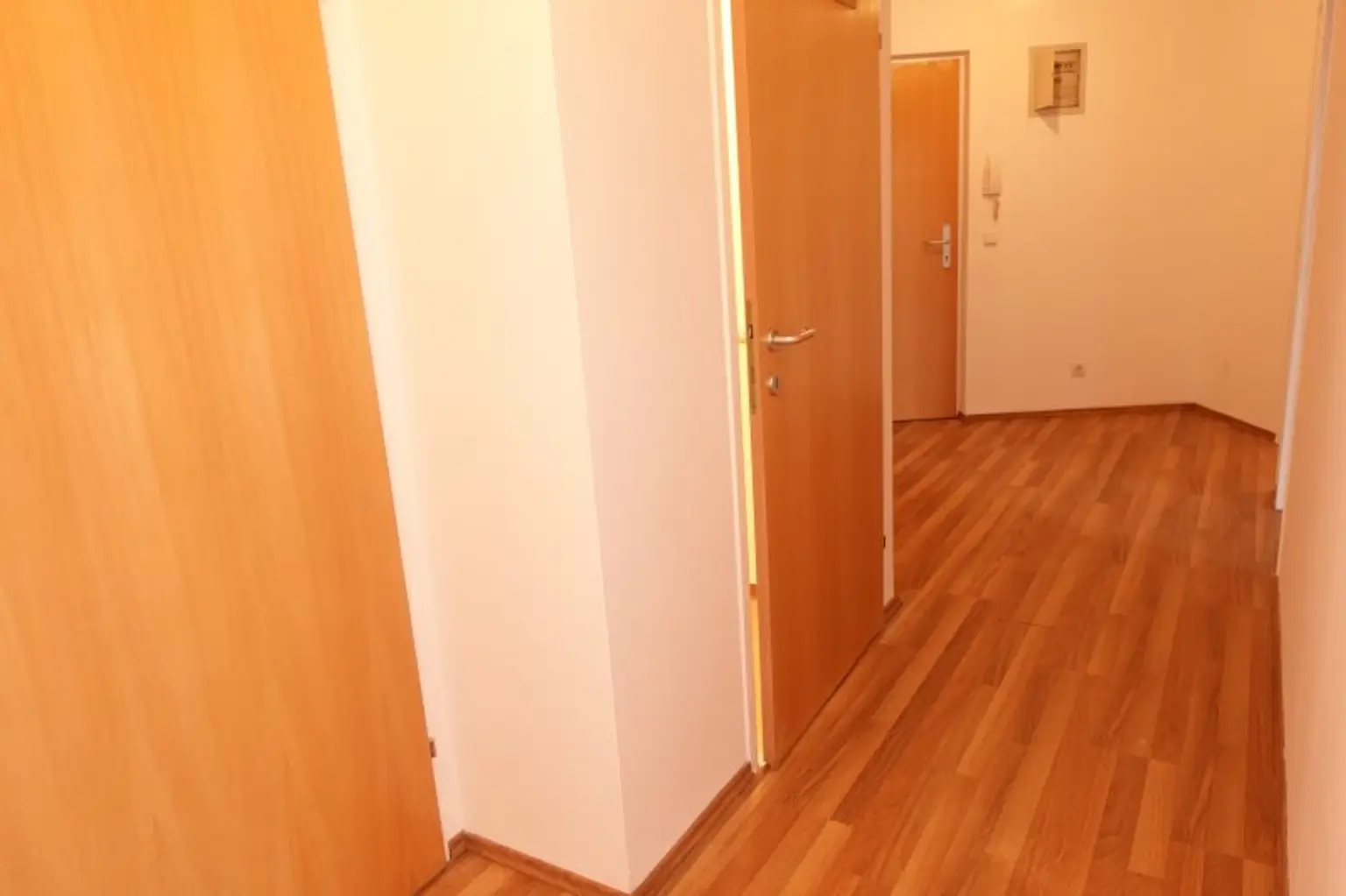Vorraum; Wohnzimmer und abgetrennter Schlafbereich; Küche (gerade noch E-Herd und Abwasch); Abstellraum; Badezimmer (Badewanne/Waschbecken/Waschmaschinenanschluss/WC); Kellerabteil