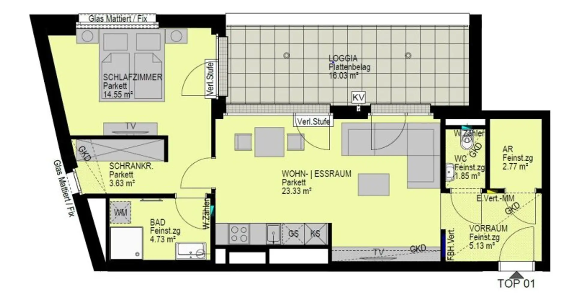 Ausstattung: Boden Bad Rollladen Klimaanlage Fahrradraum Fußbodenheizung Loggia