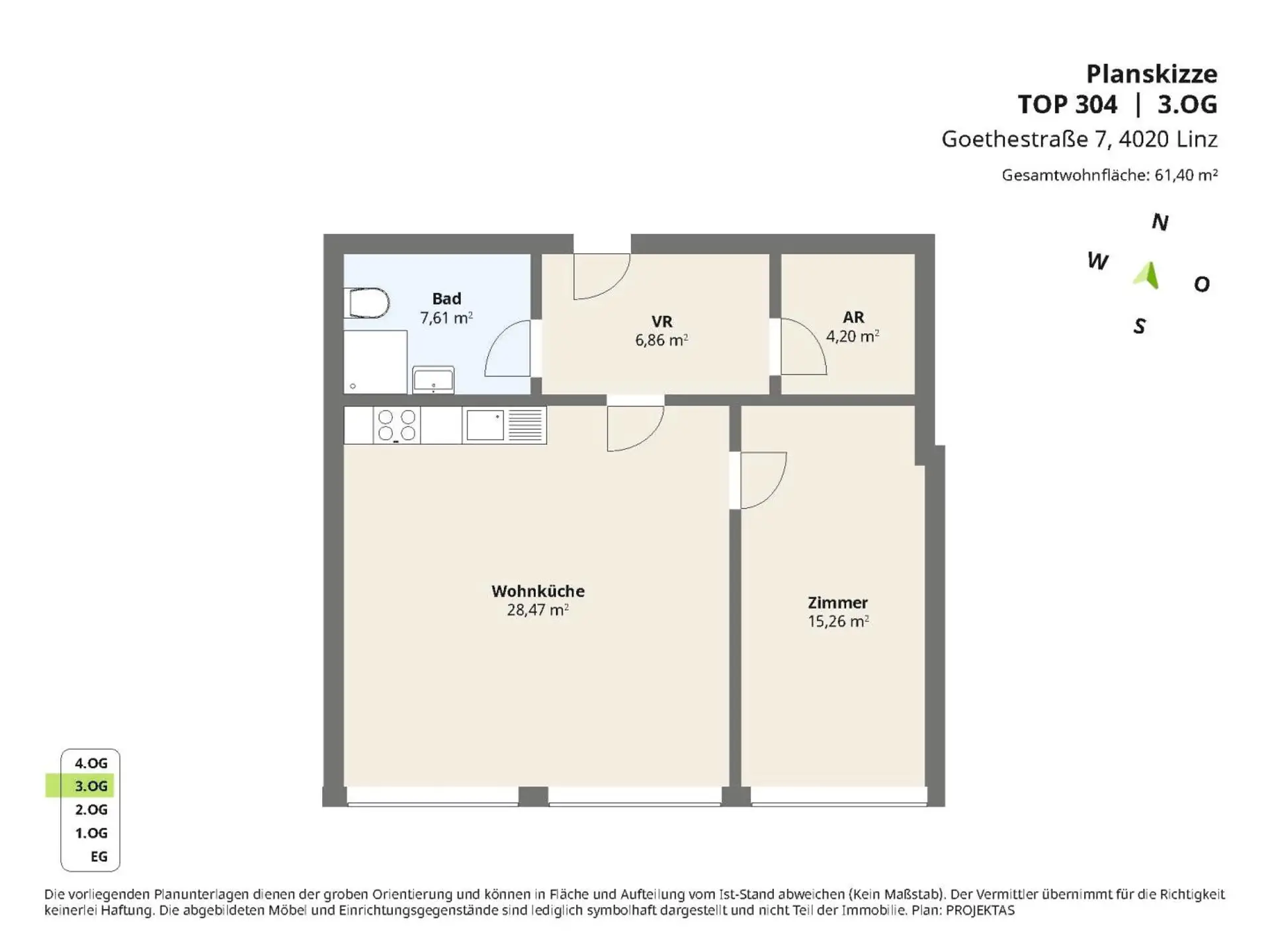 Raumaufteilung der im 3. OG (mit Lift) gelegenen Wohnung: