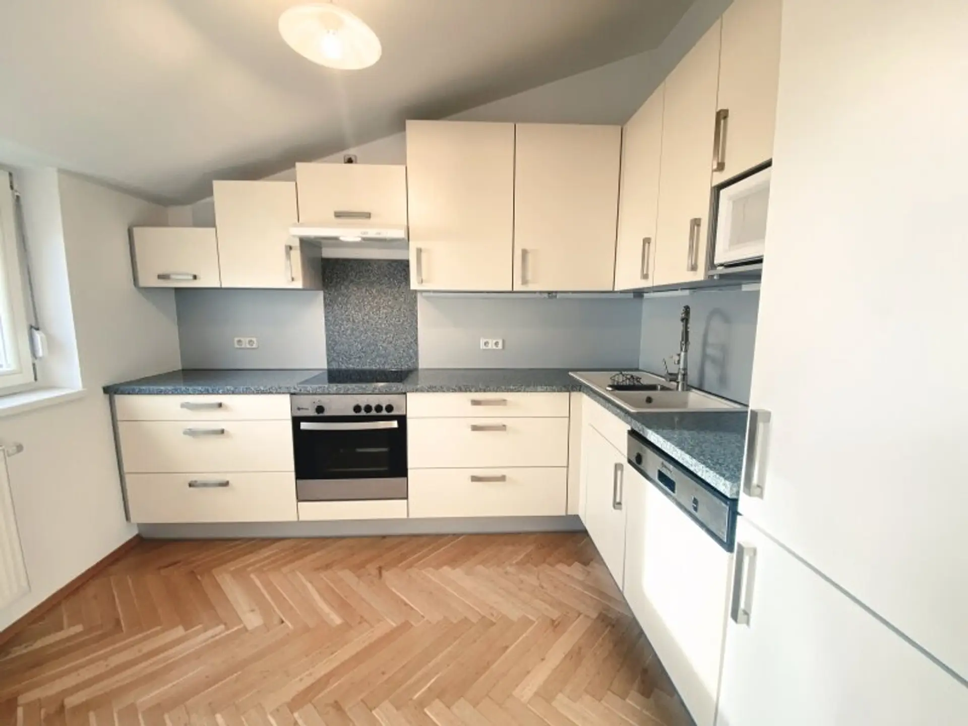 Die vorliegende Wohnung befindet sich in einem am Keplerplatz situierten Altbau im Dachgeschoss des Hauses. Unmittelbar vor der Wohnung befindet sich die Kirche St. Johann. Öffentlich ist die Wohnung durch die U-Bahnstation Keplerplatz, welche sich unmittelbar vor der Wohnung befindet und durch die Bushaltestelle Keplerplatz mit der Linie 14 A zu erreichen. Für eine Auszeit im Grünen sorgt der unmittelbar in der Nähe gelegene Waldmüllerpark. Geschäfte des täglichen Bedarfs befinden sich rund um die Wohnung verteilt. Für einen größeren Einkauf befindet sich das Shoppingcenter "Columbus Center" nur einige Gehminuten von der Wohnung entfernt.