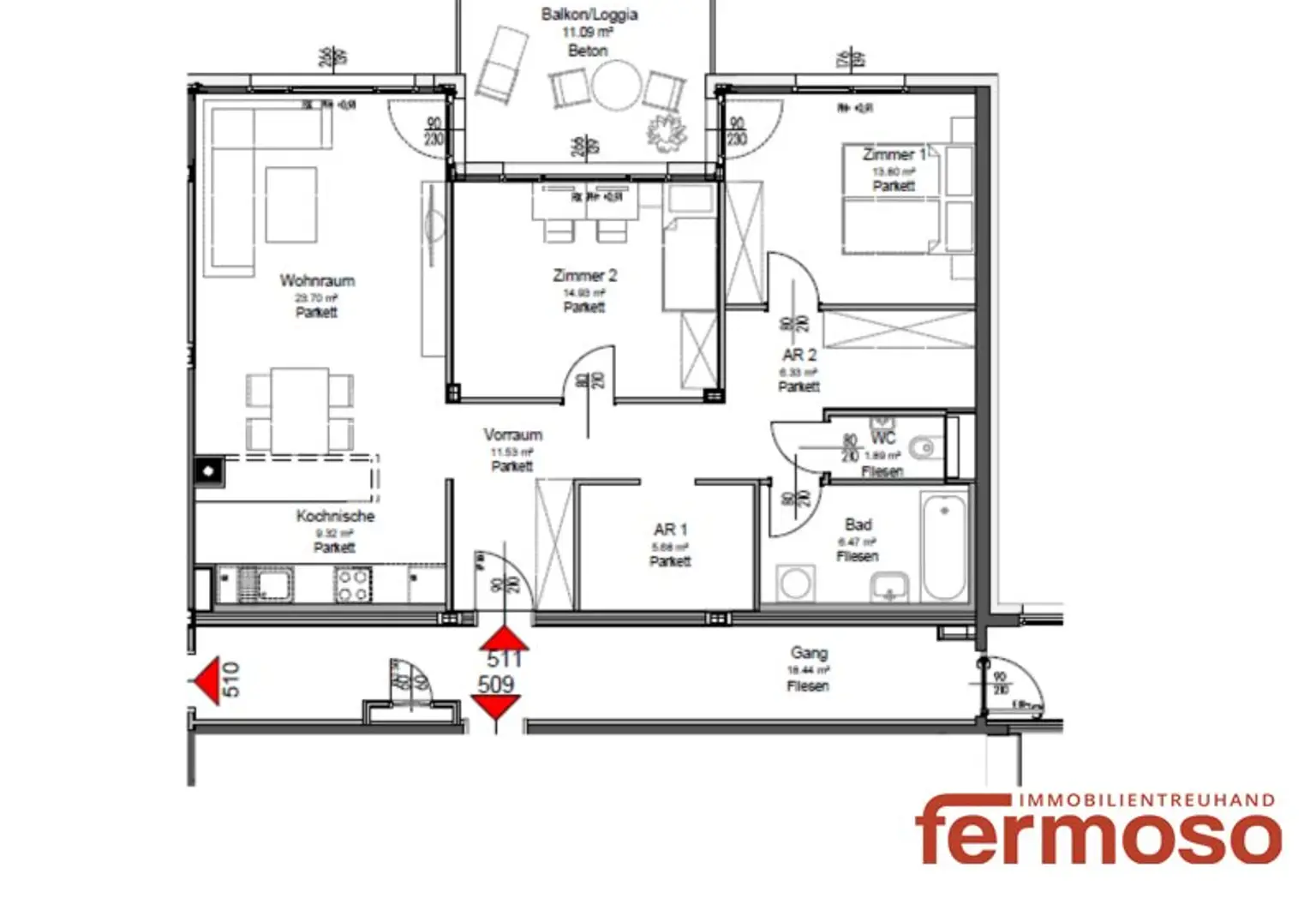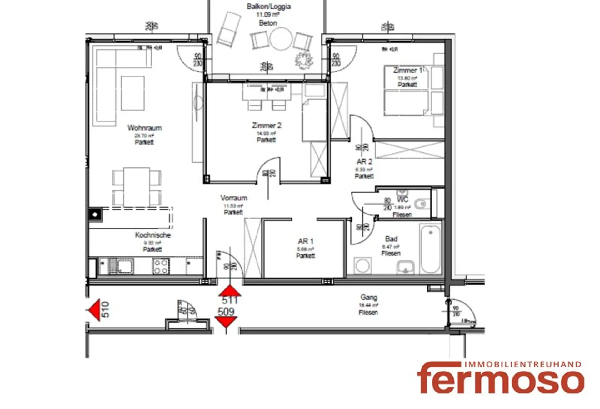 diese hochwertig ausgestattete 3-Zimmer-Wohnung im 1. Obergeschoss überzeugt mit einer großzügigen Nutzfläche von ca. 99,21 m² sowie einem Balkon mit ca. 11,09 m² und bietet somit ausreichend Platz für Familien oder Paare mit Homeoffice-Bedarf