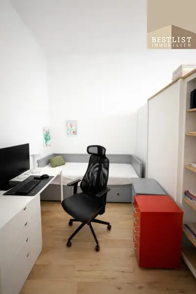 Die separate Küche ist funktional angeordnet und ist vollwertige ausgestattet. Das Kabinett eignet sich ideal als Arbeits-, Gäste- oder Kinderzimmer.