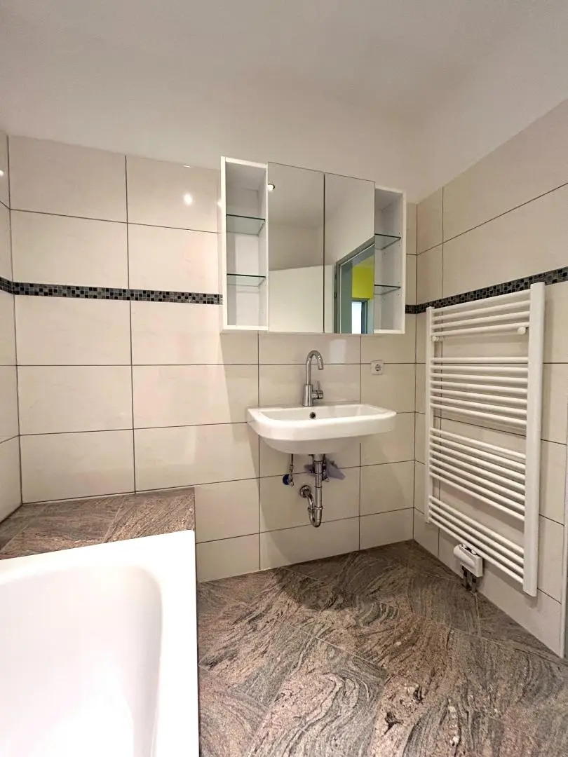 Die im 1.Obergeschoss situierte Wohnung mit ca. 93 m² Wohnfläche besteht aus einem großzügigem Vorraum, einer voll ausgestatteten Küche inkl. Essbereich, einem großzügigen Wohnzimmer inkl. Ausgang auf den Balkon, ein Schlafzimmer, sowie zwei Kinderzimmer bzw. Büro, Bad, WC und Abstellraum. Die separate EWE Küche ist funktional gestaltet und bietet genügend Arbeits- und Stauraum. Das Badezimmer ist praktisch ausgestattet, das WC ist separat, was den Wohnkomfort zusätzlich erhöht. Der optimale Grundriss der Wohnung bietet dem zukünftigen Käufer genügend Gestaltungsmöglichkeiten.