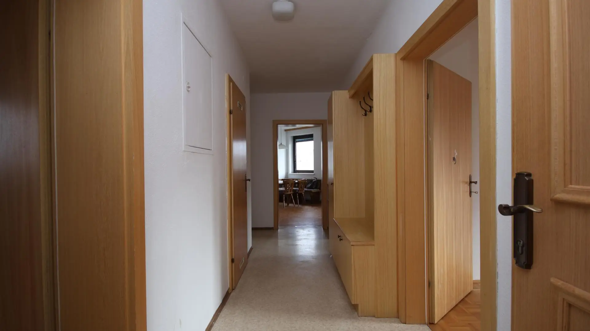 Die Wohnung liegt im ersten Obergeschoss eines gepflegten Mehrparteienhauses aus dem Jahr 1989.
