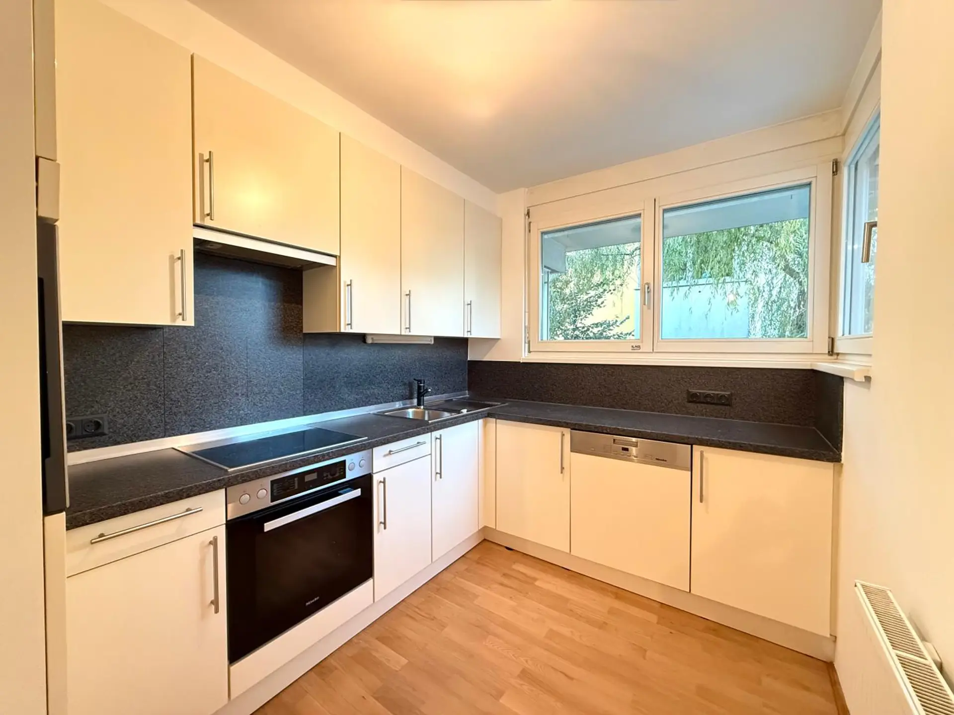 Die separate Küche ist bereits vollständig ausgestattet und trennt Kochen und Wohnen bewusst voneinander. Zwei Balkone erweitern den Wohnraum ins Freie und bieten zusätzlichen Platz zum Entspannen, Genießen oder für gesellige Stunden mit Freunden und Familie.