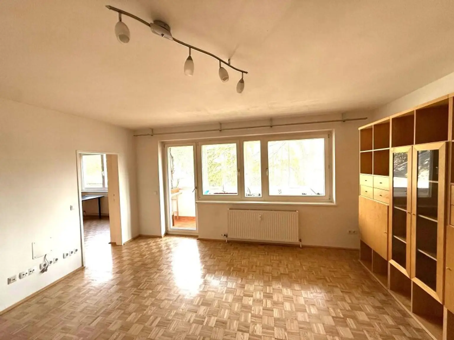 Die Wohnräume sind mit einem Parkettboden ausgestattet.