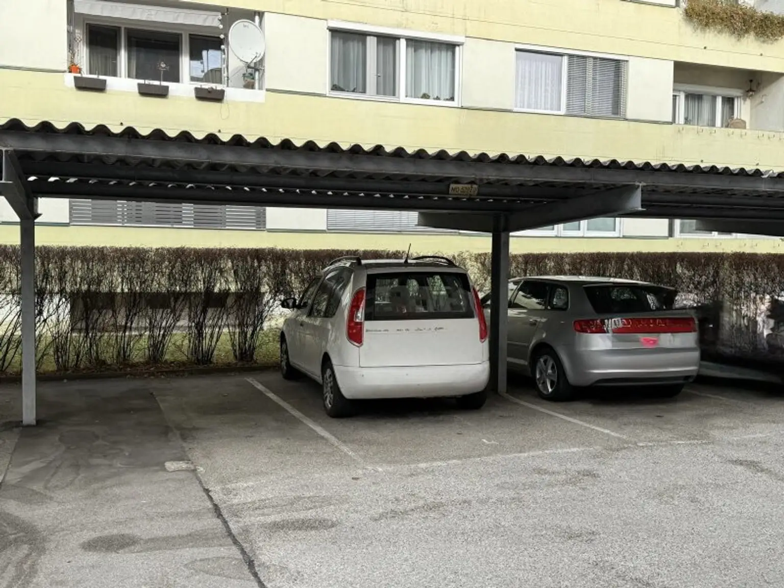 Ein überdachter KFZ-Abstellplatz im Innenhof kann um Euro 80,-- pro Monat angemietet werden.