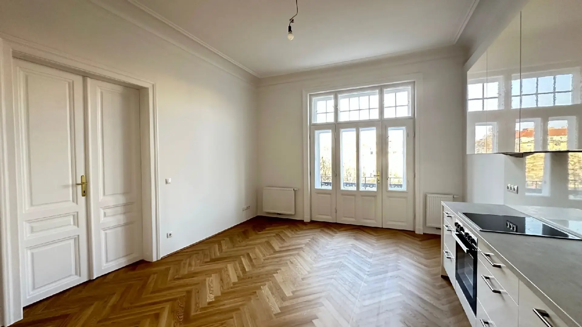 Die Wohnung präsentiert sich als großzügig geschnittene Altbauwohnung mit modernem Ausstattungsniveau und klar strukturierter Raumaufteilung. Vom weitläufigen Vorraum aus sind sämtliche Räume zentral begehbar, was eine besonders effiziente und flexible Nutzung ermöglicht. Insgesamt umfasst die Wohnung fünf Zimmer, die sich ideal als Wohn-, Schlaf-, Kinder- oder Arbeitszimmer eignen. Die Raumgrößen sind gut proportioniert, mehrere Zimmer wirken besonders großzügig und profitieren von großen Fensterflächen sowie viel Tageslicht. Der Küchenbereich ist offen in einen der Wohnräume integriert und mit einer modernen Einbauküche ausgestattet. Diese überzeugt durch klare Linien, hochwertige Geräte und ausreichend Stauraum. Das Badezimmer ist zeitgemäß ausgeführt und verfügt sowohl über eine Badewanne als auch über eine separate Dusche sowie zwei Waschbecken.Ein besonderes Highlight ist die großzügige Loggia, die von zwei Zimmern sowie direkt vom Vorraum aus begehbar ist. Sie bietet ausreichend Platz für eine gemütliche Sitzgelegenheit und stellt einen attraktiven, ruhigen Außenbereich dar. Die Ausstattung kombiniert klassische Altbauelemente wie Fischgrätparkett und hohe Räume mit moderner Innenausstattung. Große Fenster sorgen für eine helle und angenehme Wohnatmosphäre. Insgesamt handelt es sich um eine großzügige 5-Zimmer-Wohnung mit weitläufigem Vorraum, moderner Küche, Badezimmer mit Wanne und Dusche sowie einer gut angebundenen Loggia. Lage Das Objekt befindet sich in der Weißgerberlände 40 und damit direkt am Donaukanal sowie an der Grenze des 3. Bezirks zum 2. Bezirk mit der Grünruheoase Prater. Zahlreiche Geschäfte des täglichen Bedarfs wie Supermärkte, Apotheken, Banken, uvm. befinden sich in der näheren Umgebung. Die Straßenbahnlinie 1, welche fußläufig erreichbar ist, verbindet die Wohnung mit der Inneren Stadt sowie der Endstation Stefan-Fadinger-Platz. Ansprechpartner Frau Doris Kurzweil || +43 699 17 55 66 16 || dk@jpi.at Wir weisen darauf hin, dass wir entgegen dem in der Immobilienwirtschaft üblichen Geschäftsgebrauch des Doppelmaklers – einseitig nur für den Vermieter tätig sind und wir mit dem Abgeber in ständiger Geschäftsbeziehung stehen und schon aus diesem Grund ein wirtschaftliches Naheverhältnis vorliegt.