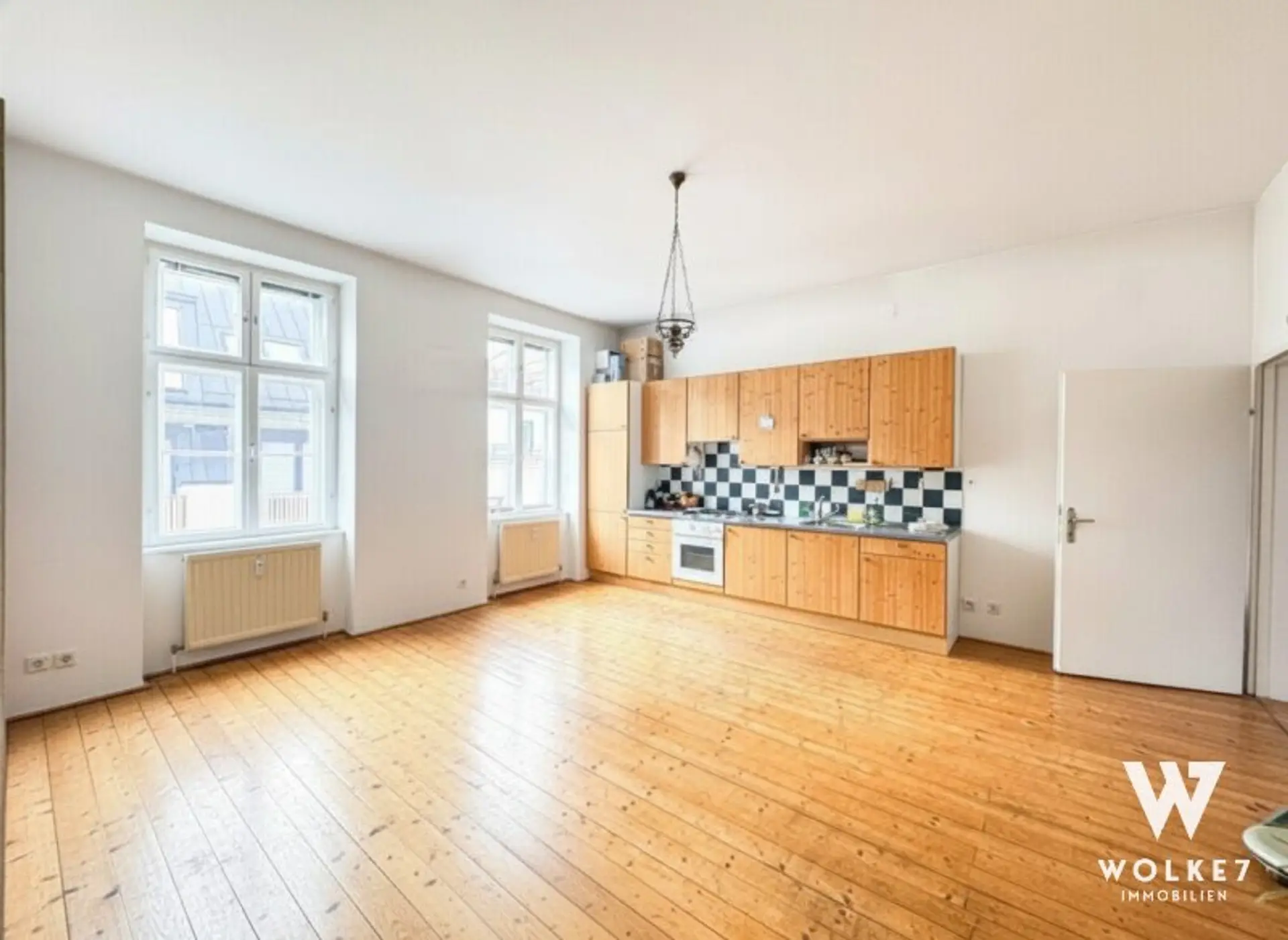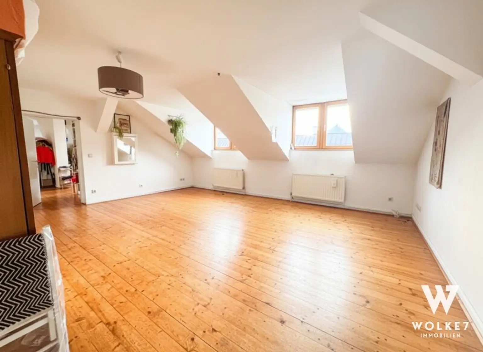 Diese besondere Maisonette vereint klassischen Altbaucharakter mit großzügigem Dachgeschoßambiente. Die Wohnung umfasst ca. 175 m² Wohnfläche – ca. 59 m² im 3. Stock (Top 8) sowie ca. 115 m² im ausgebauten Dachgeschoß (Top 10) – verbunden durch eine Wendeltreppe im Vorzimmer.