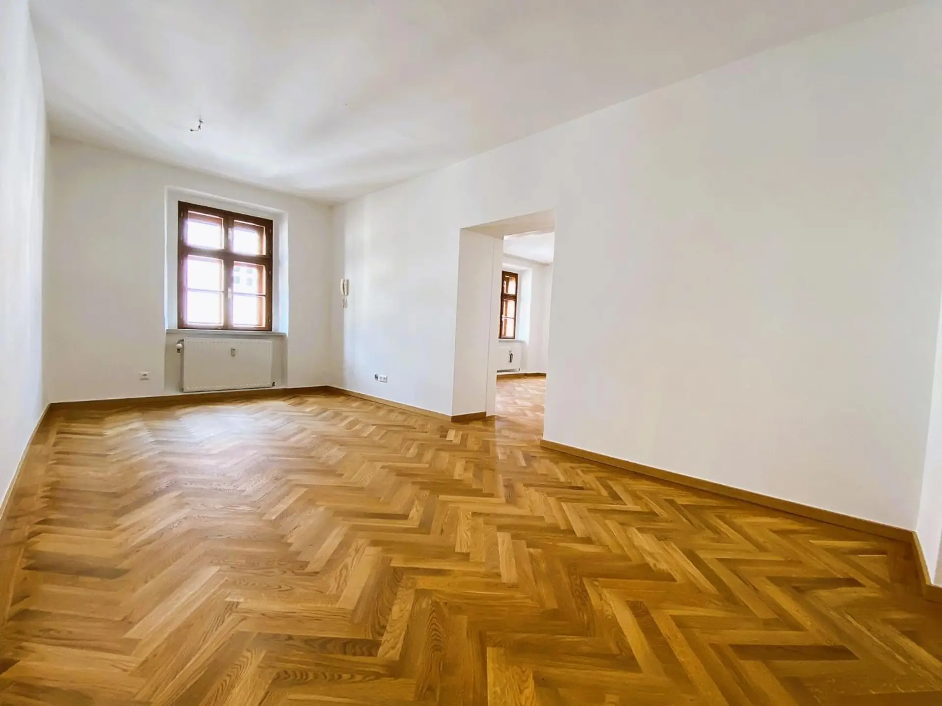 Diese frisch renovierte Wohnung bietet Ihnen auf ca. 88 m² zwei große Zimmer, ein Durchgangszimmer, Vorzimmer mit Küchenzeile, Bad, WC getrennt.