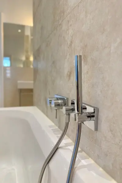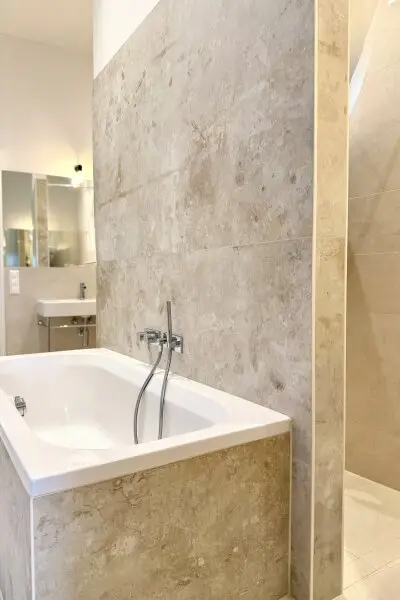 * Badezimmer mit Wanne, Dusche und WC, ca. 15,50 m²