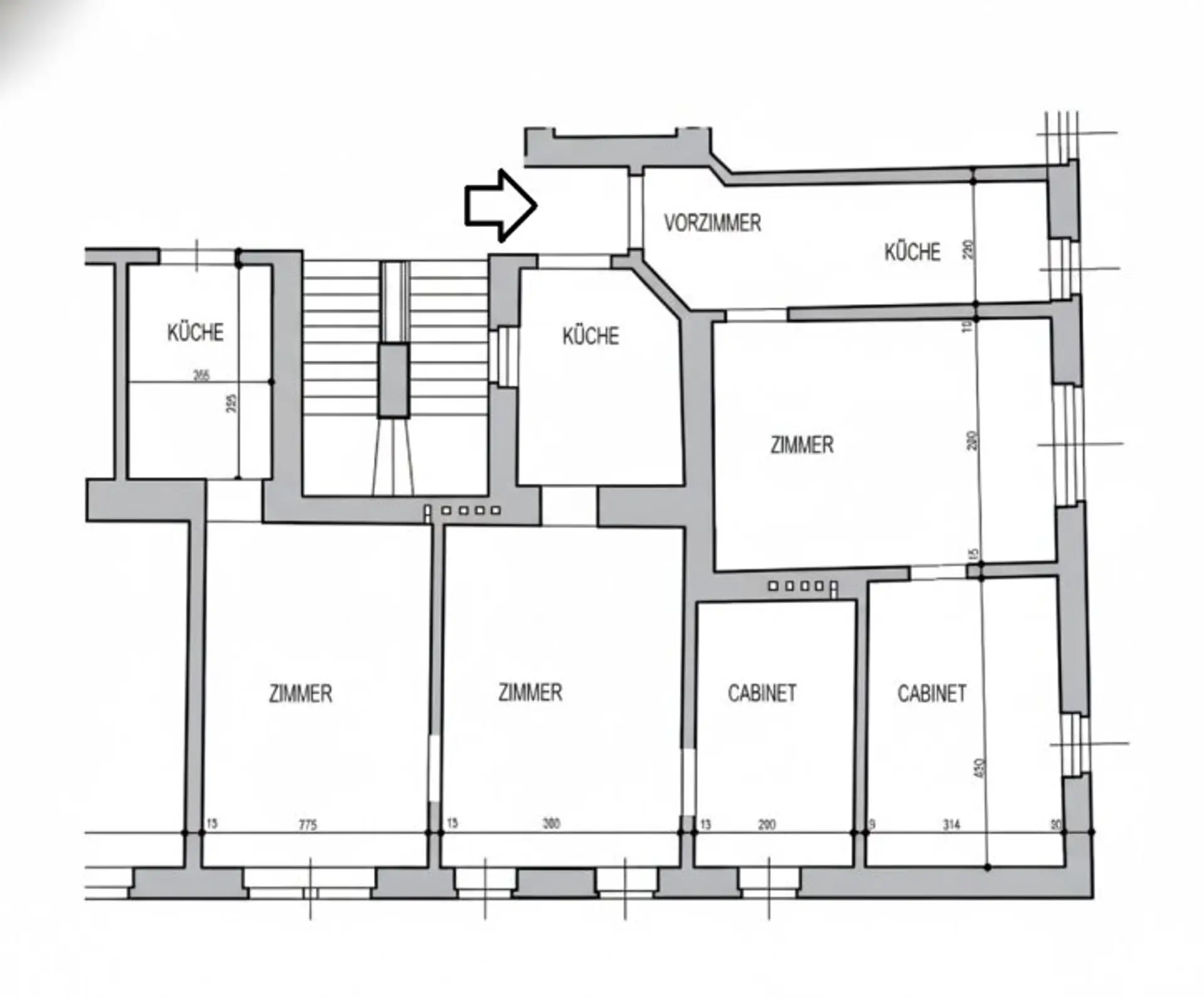 Die Wohnung befindet sich im ersten Stock eines Altbaus und besticht durch eine interessante Raumaufteilung. Die moderne Einbauküche ist nicht nur funktional, sondern auch ein echter Blickfang, die das Kochen zum Vergnügen macht. Das Badezimmer mit Fenster sorgt für eine angenehme Atmosphäre und verfügt über eine große Dusche, die Ihnen den idealen Start in den Tag ermöglicht.