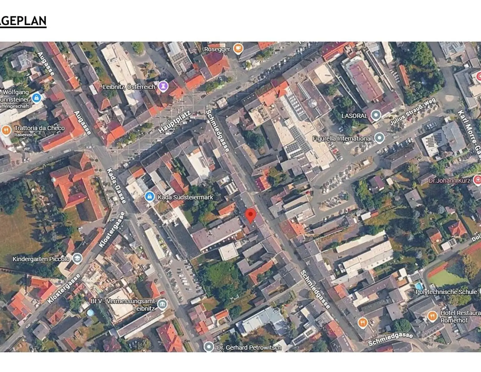 Das Mietobjekt liegt in einer Seitenstraße zum Leibnitzer Hauptplatz in der Schmiedgasse (Einbahnstraße). Direkt davor befinden sich öffentliche Parkplätze in der blauen Zone (1 Stunde gratis Parken mit Parkscheibe, Sam…