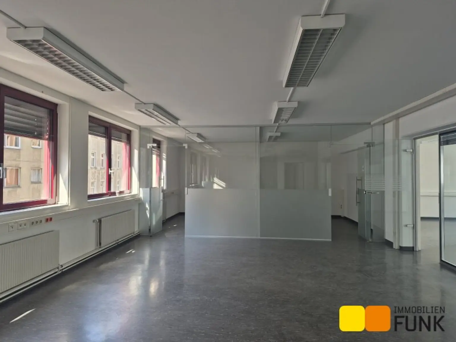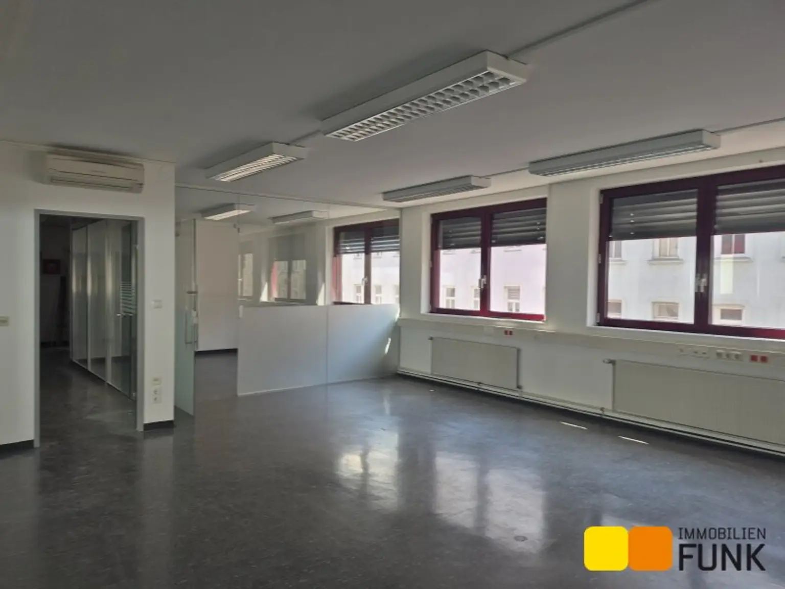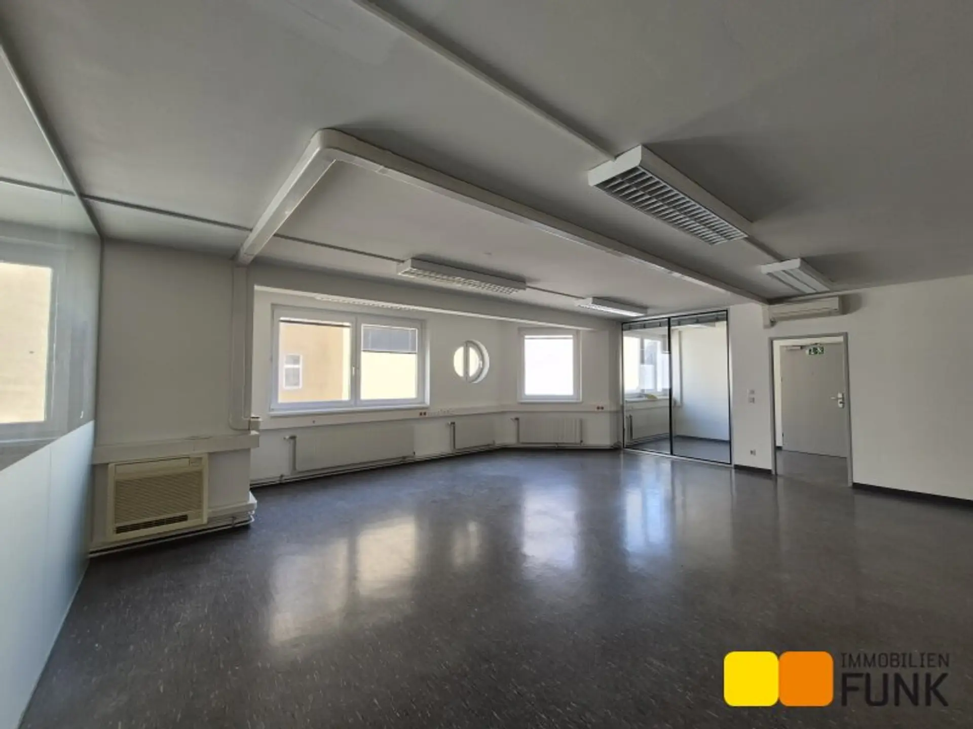 Zur unbefristeten Vermietung gelangt diese großzügige Bürofläche im dritten Liftstock eines gut erhaltenen Neubaus aus den 80er/90er-Jahren. Die Nutzfläche beträgt ca. 219,73 m² und deckt die Hälfte des ersten Obergeschosses ab. Über einen Empfangsbereich gelangt man in zwei große helle Büroräume (ca. 74 bzw. 87 m²), die sich durch eine angenehme Arbeitsatmosphäre auszeichnen. Des Weiteren gibt es noch einen Sozialraum und Toilettenräumlichkeit wie im Plan ersichtlich ist. Die aktuelle monatliche Vorschreibung für Heizung beträgt € 195,88 inkl. USt.