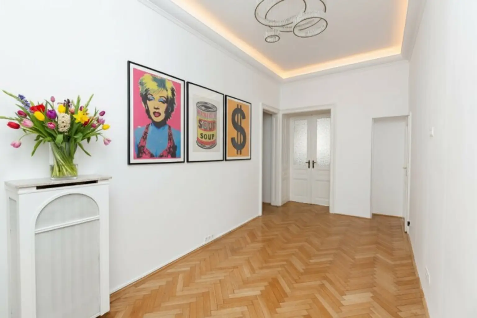 Die Wohnung verbindet Altbaucharme mit modernen Elementen: