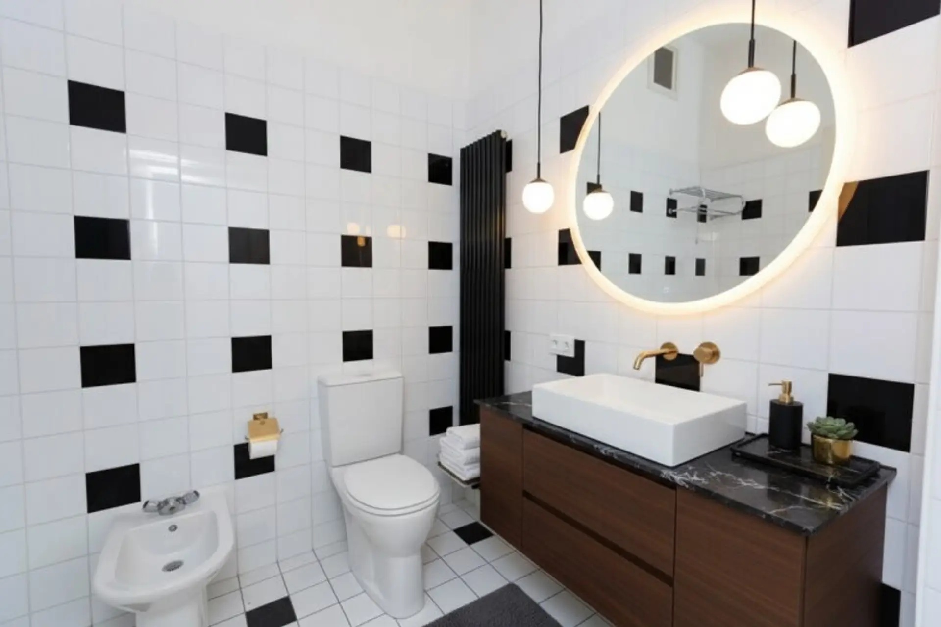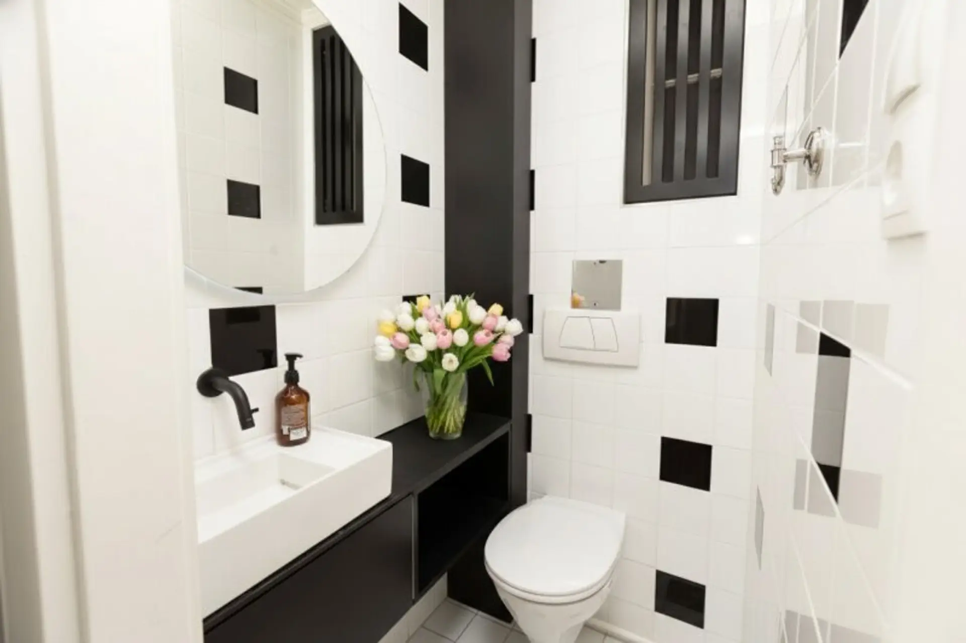 * Sanitärräume mit Fliesen im Retrolook und elegante Armaturen