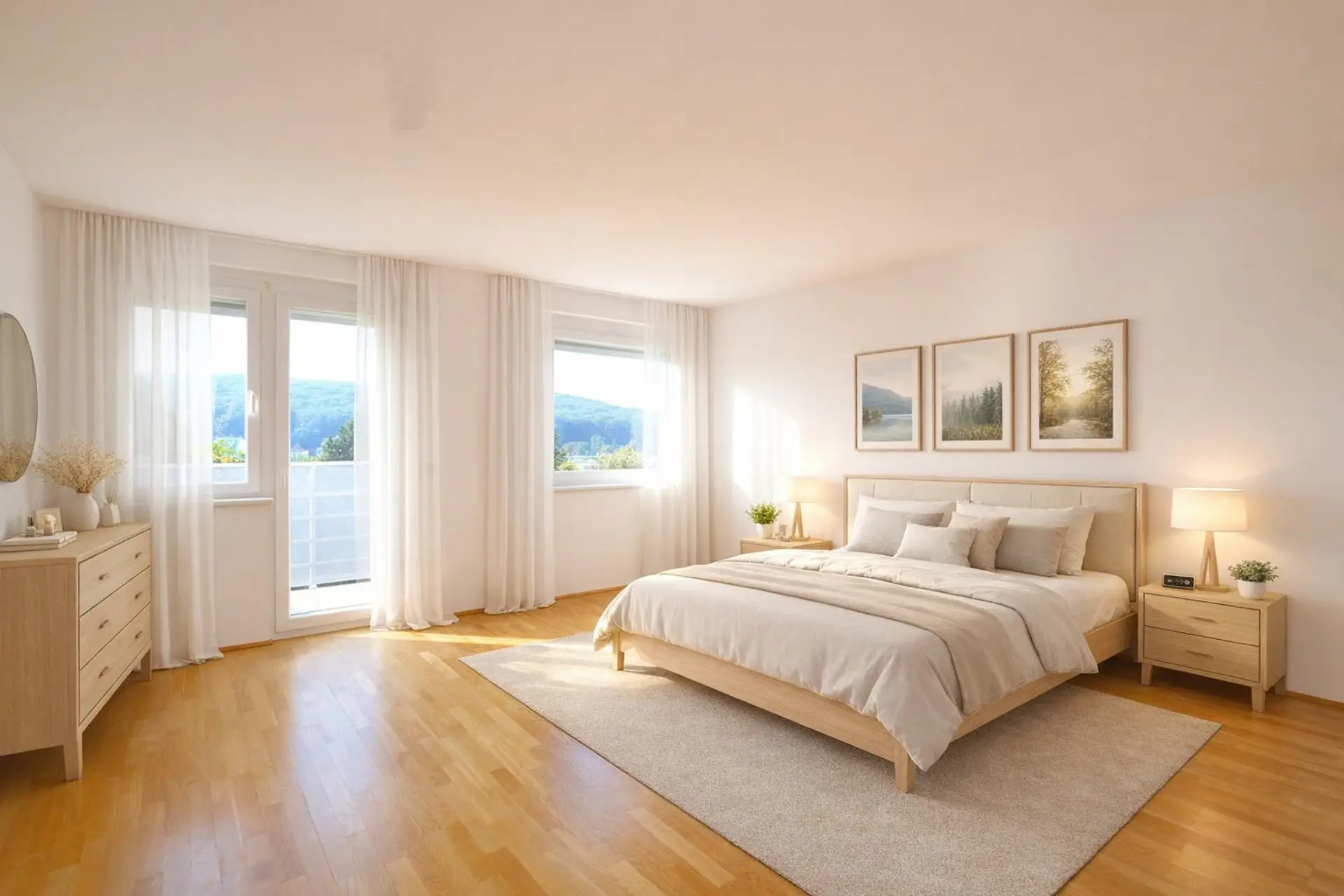 Der zweite Vorraumbereich führt zum Masterbedroom mit ca. 22,83 m², welches durch seine Größe und den direkten Zugang zur Südterrasse überzeugt.